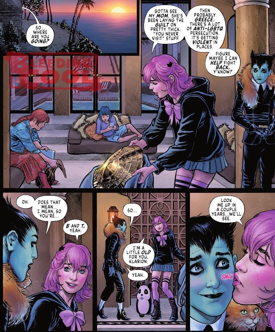 Bisexual and trans. And that maybe she's a little old for him, Klarion is established these days as being around sixteen (rather than thousands of years old), as well as being from another demonic dimension, so who knows how that works over there. But for now, DC Comics has a new trans character, Featherweight. And she's the granddaughter of Ra'a Al Ghul, niece of Talia Al Ghul and cousin of Damian Wayne. And co-created by Greg Rucka, she may even turn up in his next DC Comics project, Batwoman. Cheetah and Cheshire Rob the Justice League #6 by Greg Rucka and Nicola Scott was published yesterday by DC Comics. The mini-series will be collected as a graphic novel and published later as Justice League: Cheetah & Cheshire Rob the Watchtower in May 2026.