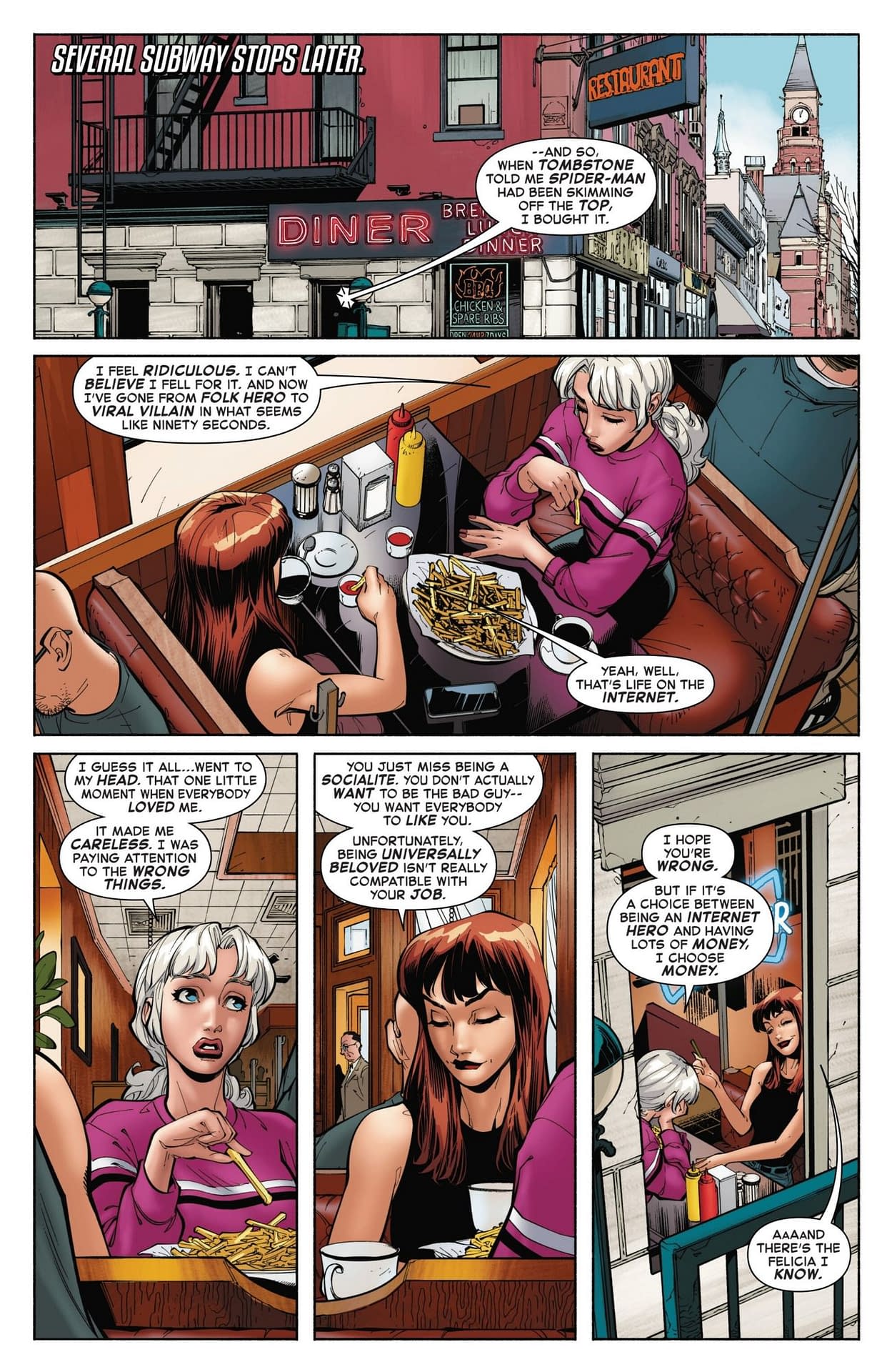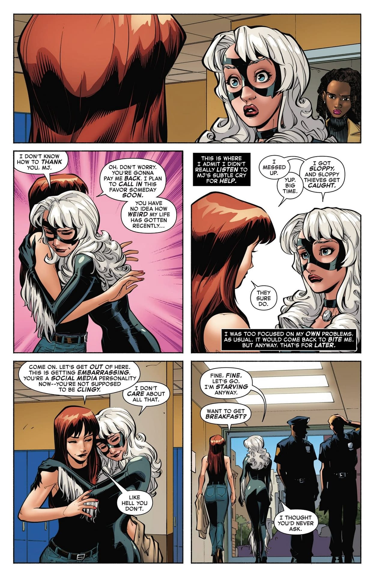 In yesterday's Black Cat #5, part of writer G. Willow Wilson and artist Gleb Melnikov's run, Marvel's greatest super thief found herself in trouble with the law…again. Luckily for Felicia, a certain red-headed superhero is in her corner.