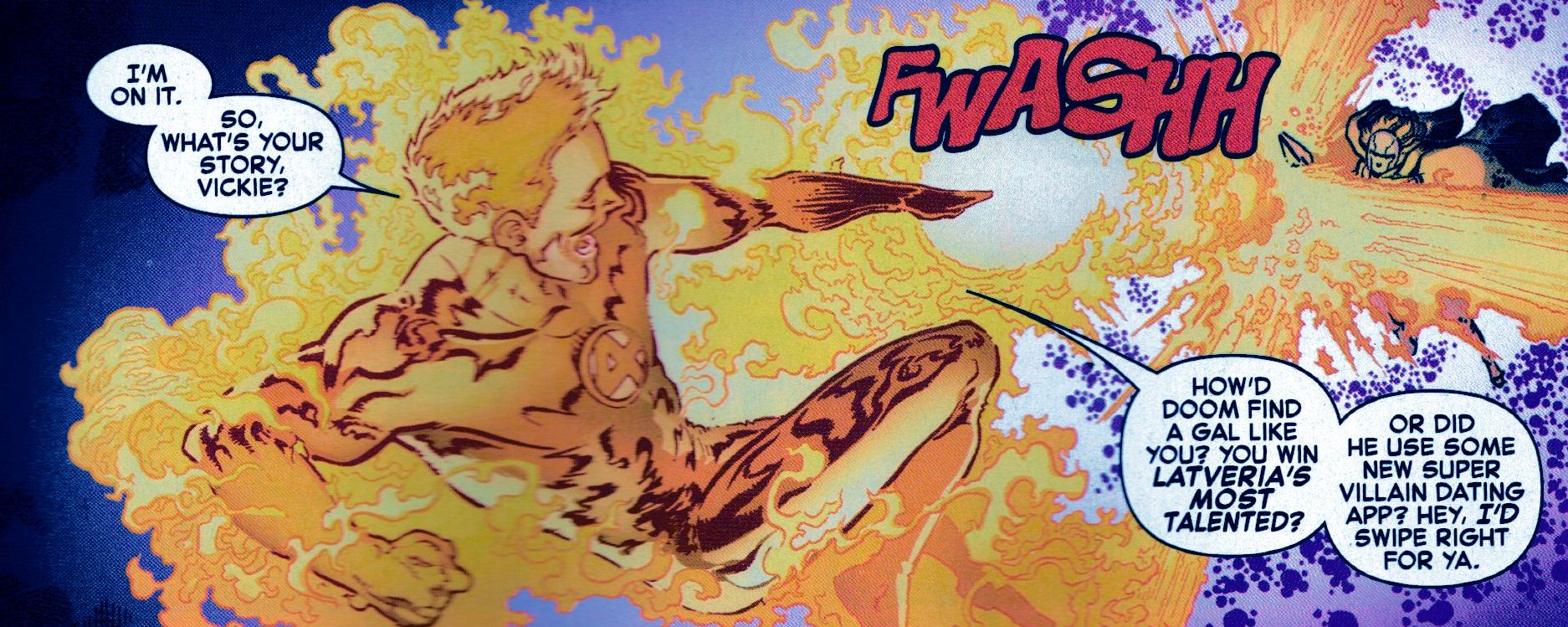 Already calling her Vicky… and making dated dating references. I thought it was Reed and Sue who had been away for ages?