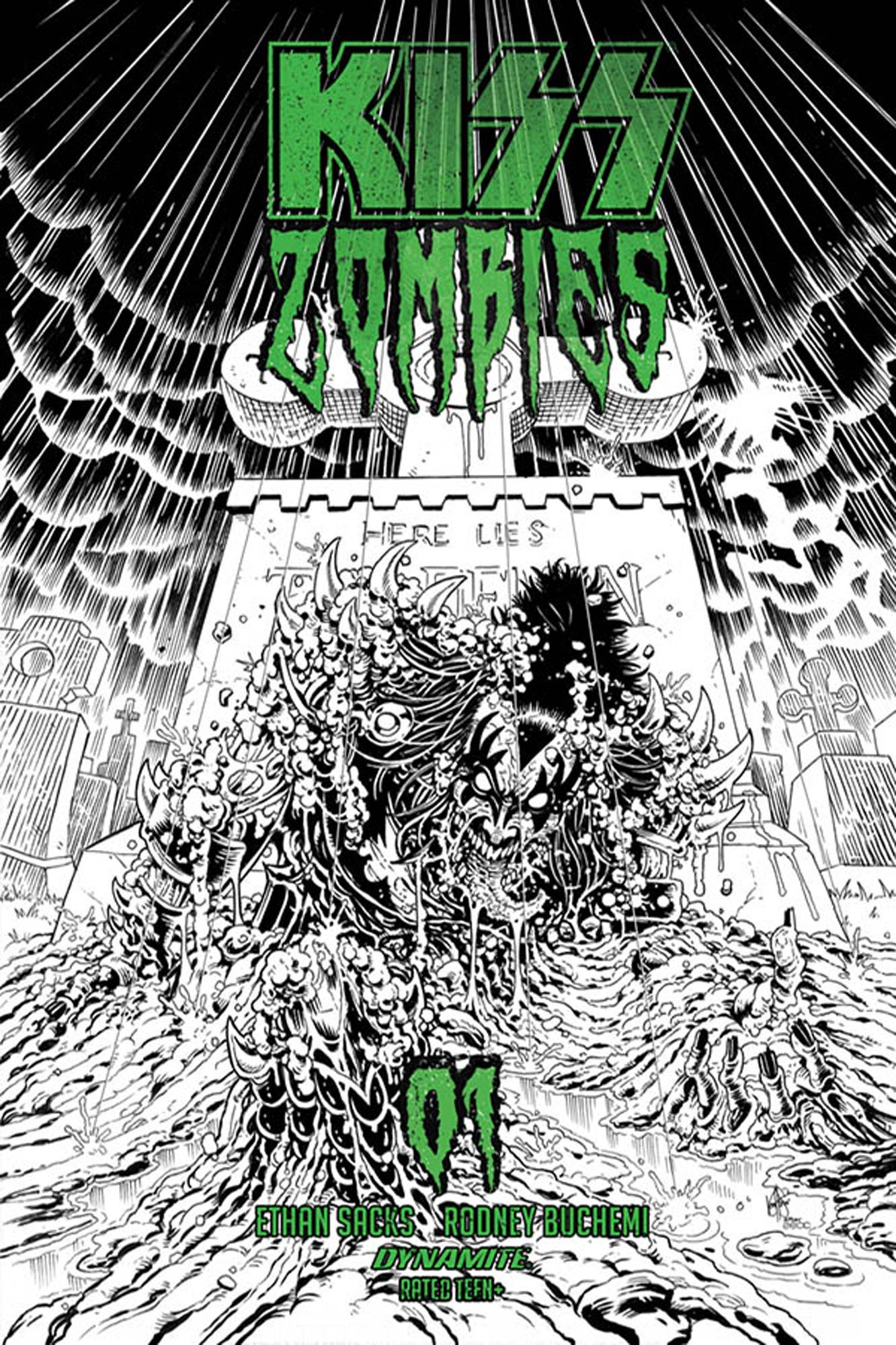 KISS Zombies #1 1:11 (over initial orders) Ken Haeser B&W cover.