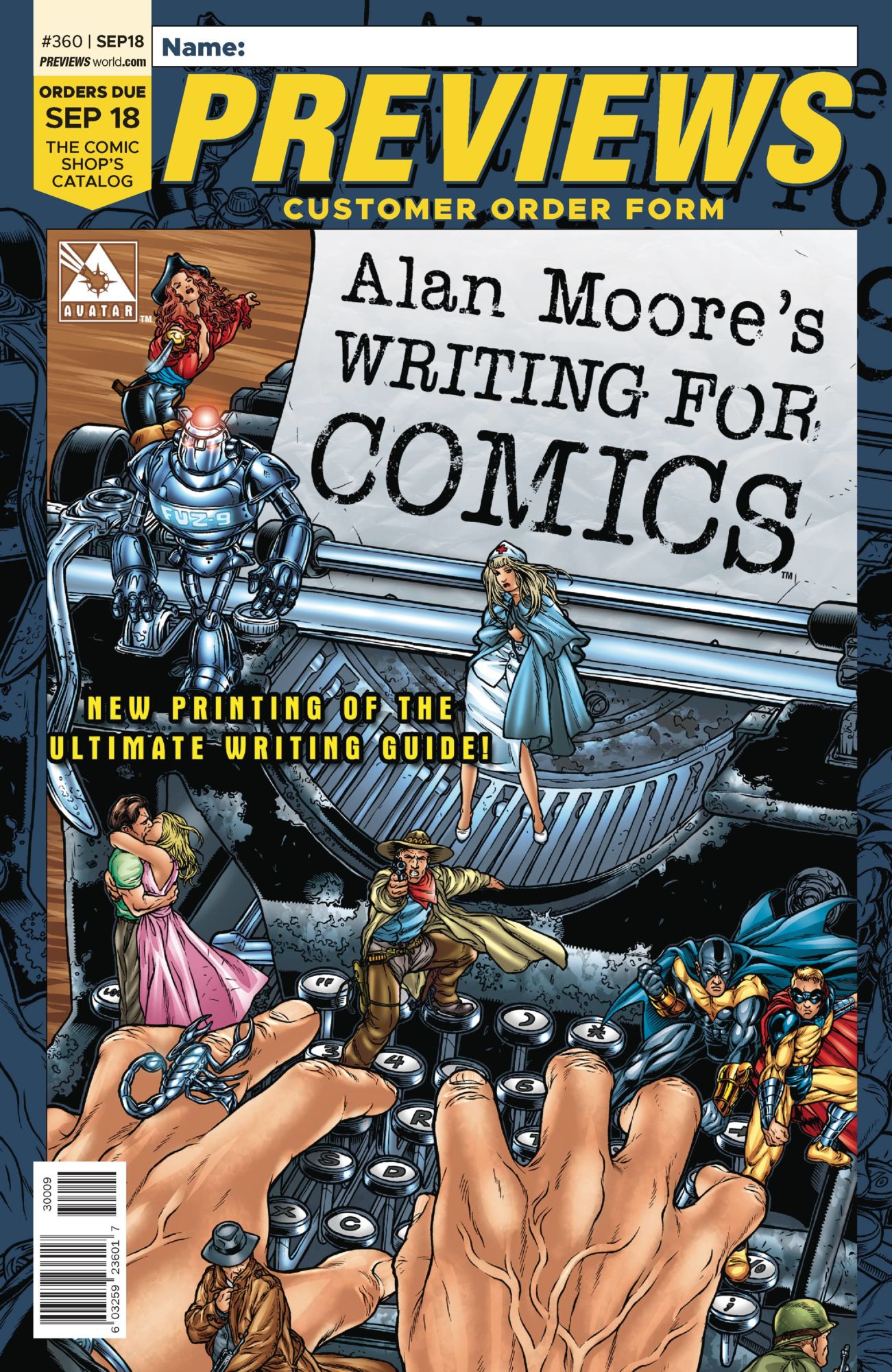 And the Previews catalogue has a reissue of Alan Moore's Writing For Comics from Bleeding Cool's publisher Avatar Press. A collection of Moore's best advice for writing comics, written in the eighties just before Watchmen was published, and out of print for some time…