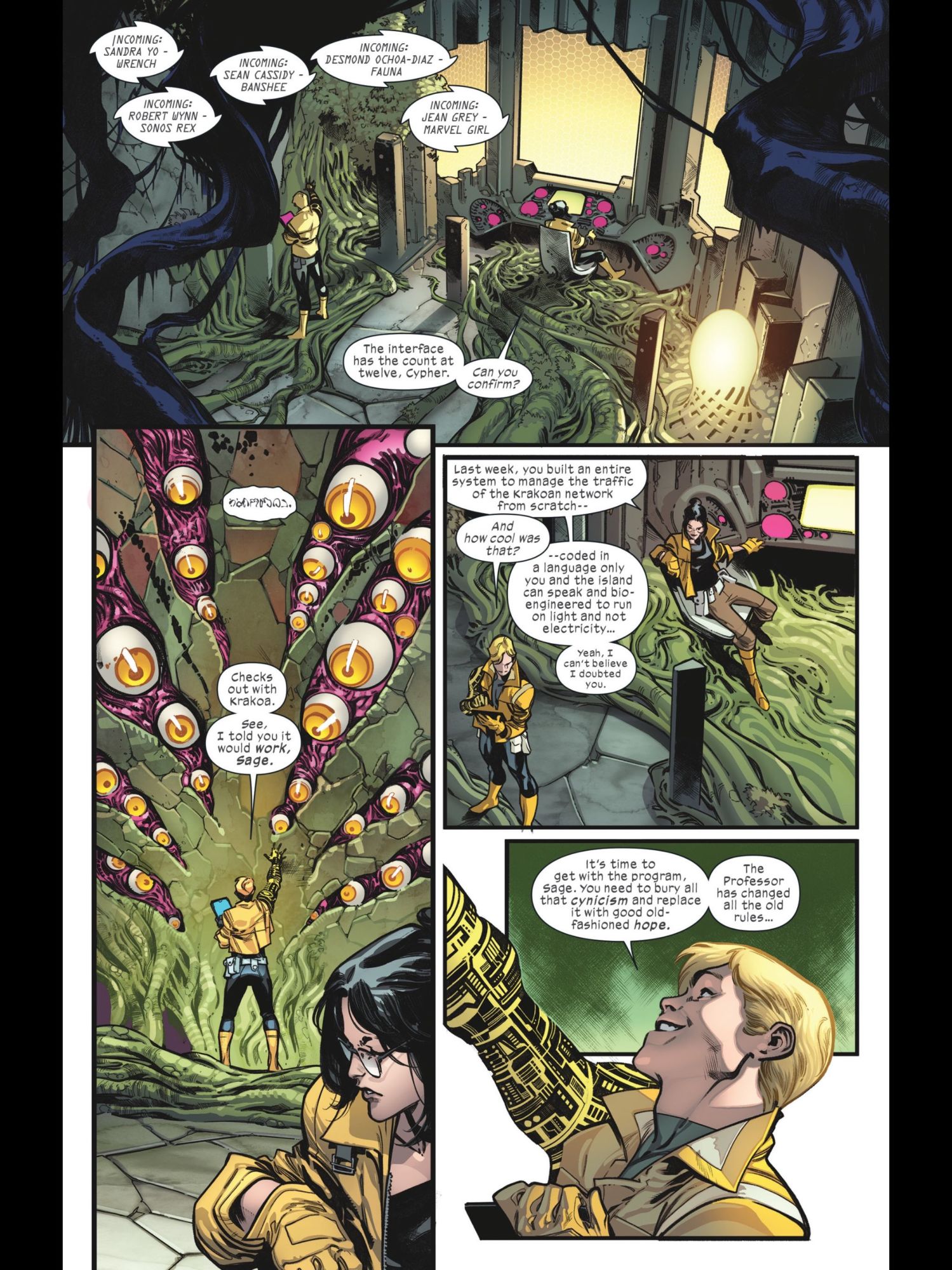 The free House Of X/Powers Of X/Dawn Of X previews in comic book stores today, Sowing The Seeds, give a lot of insight into what Jonathan Hickman is bringing to the X-Men. And then again, not a single bit of information that is of any use. As he says in the intro,