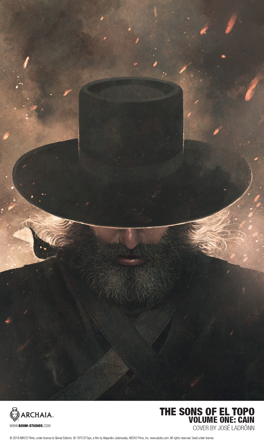 Fueled by resentment, and unable to kill his saintly father, Cain begins the slow pursuit of his half-brother in a tale of magic and mayhem in THE SONS OF EL TOPO VOLUME ONE: CAIN, featuring a haunting cover by José Ladrönn, and continuing the mythic tale only in graphic novel format.