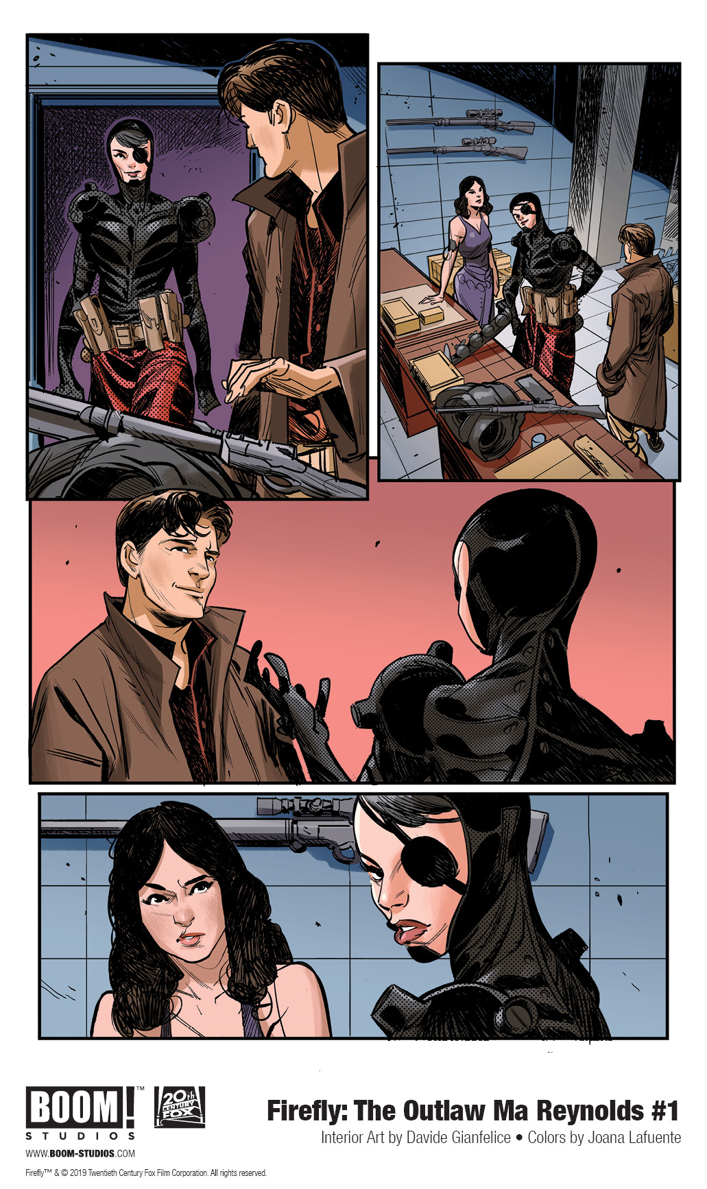 FIREFLY: THE OUTLAW MA REYNOLDS #1 is available January 15, 2020 exclusively in comic shops (use comicshoplocator.com to find the nearest one) or at the BOOM! Studios webstore. Digital copies can be purchased from content providers, including comiXology, iBooks, Google Play, and Madefire.