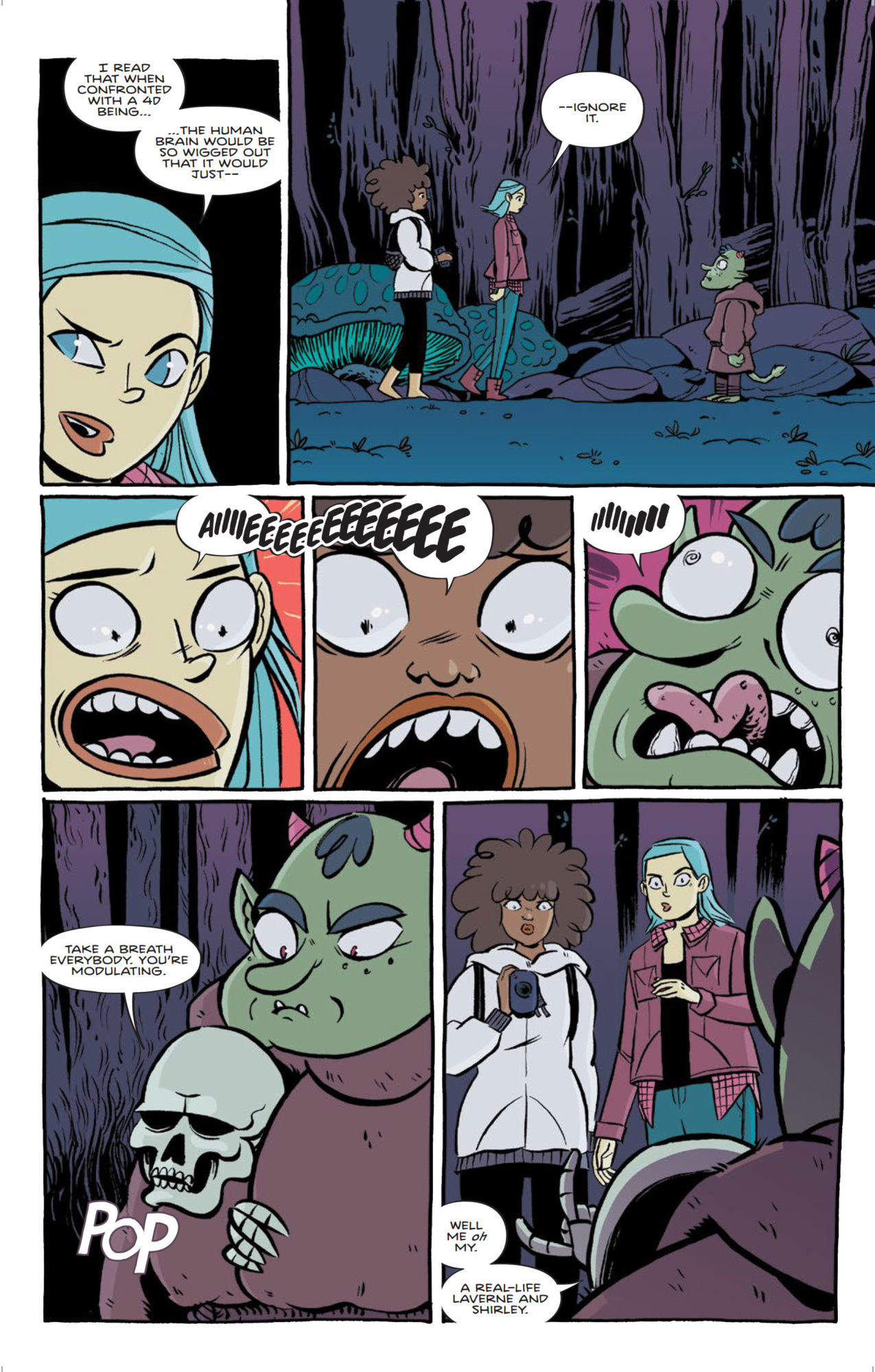 After meeting a friendly new face in the alternate dimension they've stumbled upon, Heather (eagerly) and Jane (reluctantly) agree to venture further in. With their trusty camcorder to record what they find and an inhuman new buddy, there's no turning back! Now, if they can just make their documentary while also surviving the monsters and magic in this new world, they'll be super-rich and everything will be great. As far as fool-proof plans go…well, it's a plan.