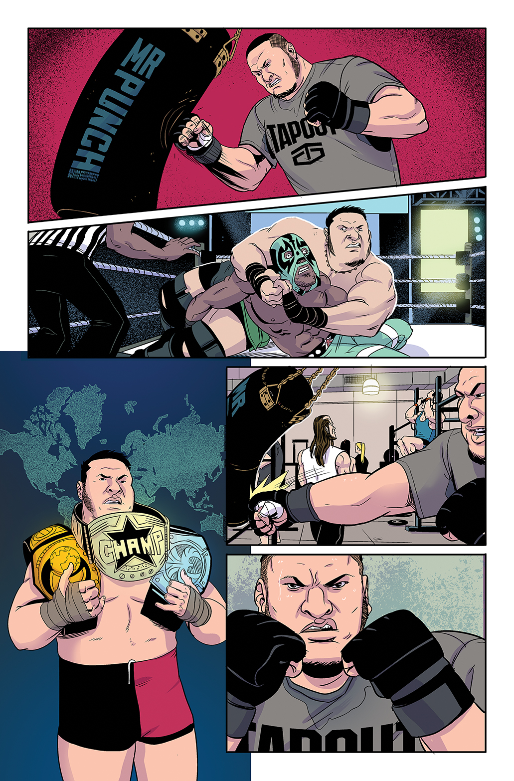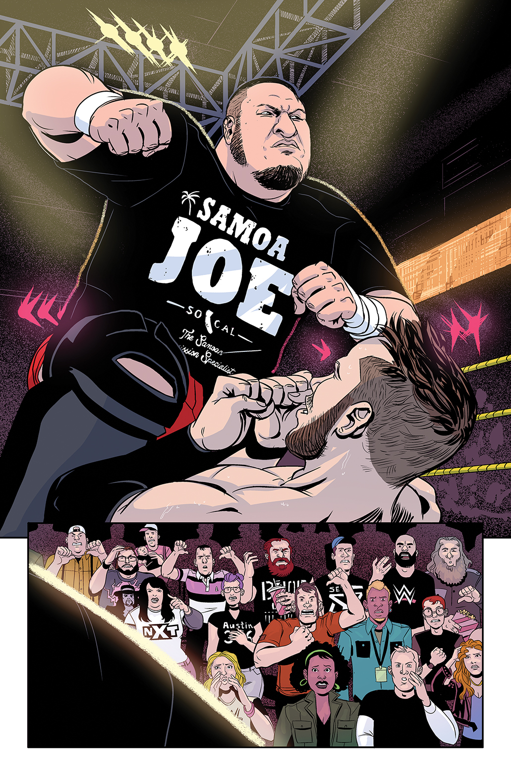 BOOM! Studios has released a first look preview of the upcoming WWE: NXT Takeover – Proving Ground #1, the second in a series of one-shots replacing BOOM!'s WWE comic in September as part of the "get people to buy four comics instead of one" marketing initiative. Written by Dennis Hopeless with art by Kendall Goode, this issue focuses on Finn Balor's rivalry with Samoa Joe.