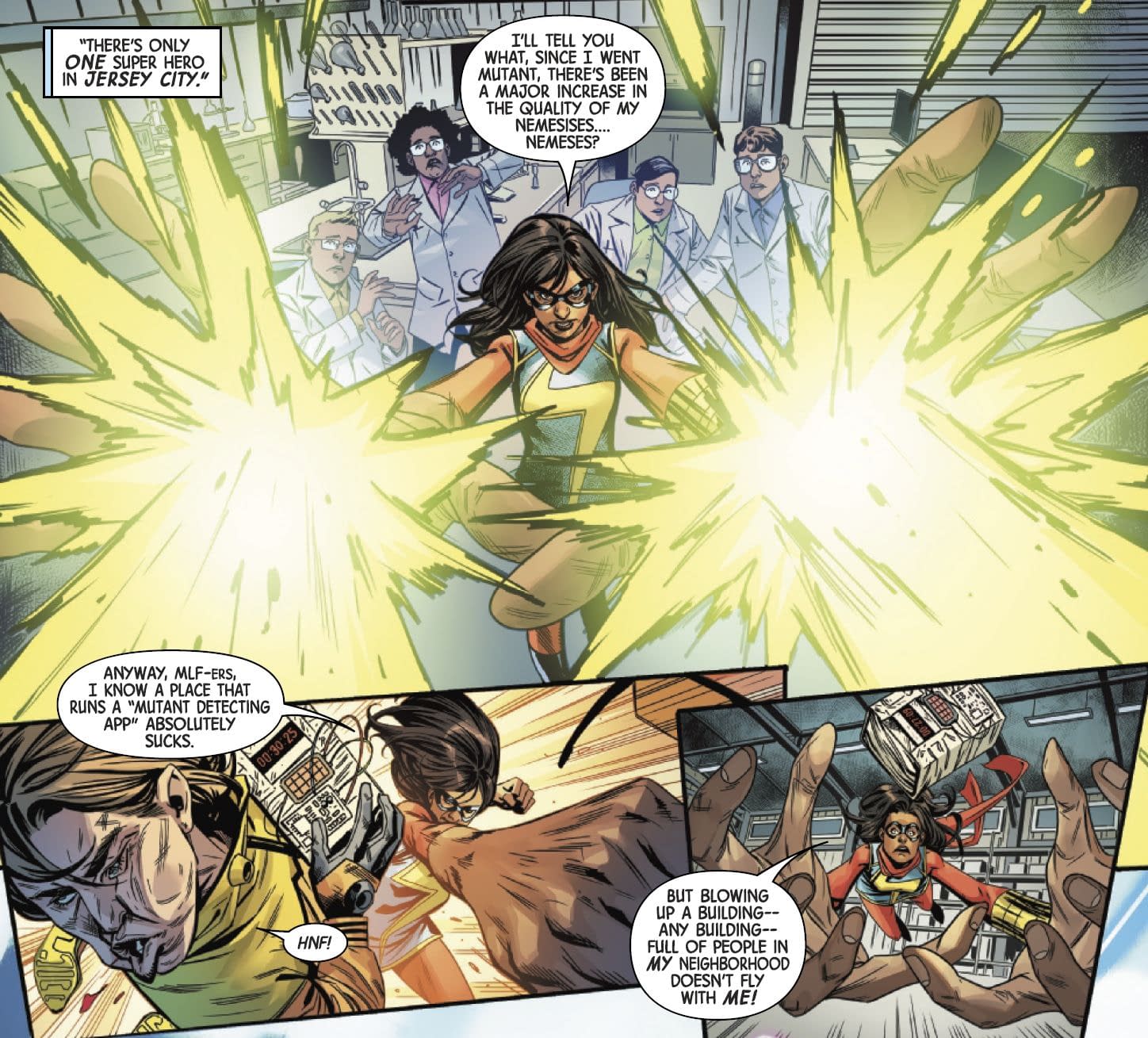 And as the current Mutant Liberation Front, the MLF, target Ms Marvel in New Jersey, the newest mutant of all. And also here's hoping they don't set up a global organisation, the Mutant International Liberation Front, right?