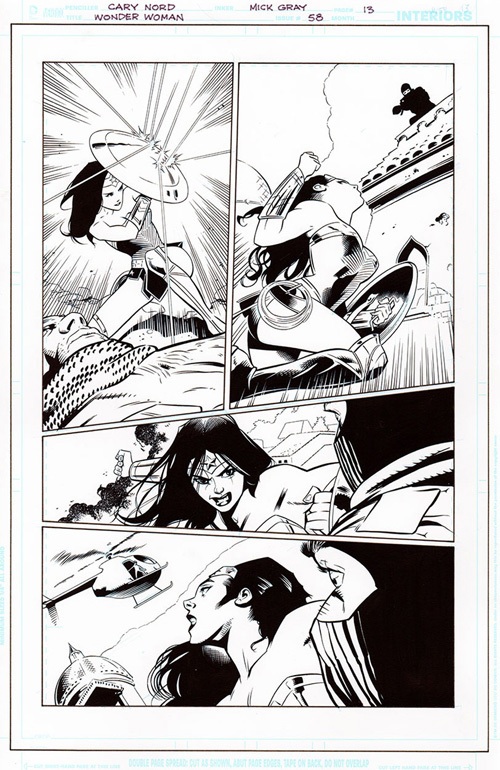 It begins, with somewhere Hippolyta describes as 'places even the brightest light cannot illuminate.' No, not Twitter, this is the underground, below Paradise Island, where Ares, God Of War, has been imprisoned for a very long time. And Cary Nord portraying those worlds with great distinction and a strong flow, and not a million miles from the George Perez/Phil Jimenez look that this comic used to enjoy, albeit one with more spot blacks, harsher angles and a slightly cartoonier facial approach. And hell, there are moments that I could swear were pure Deodato as well.