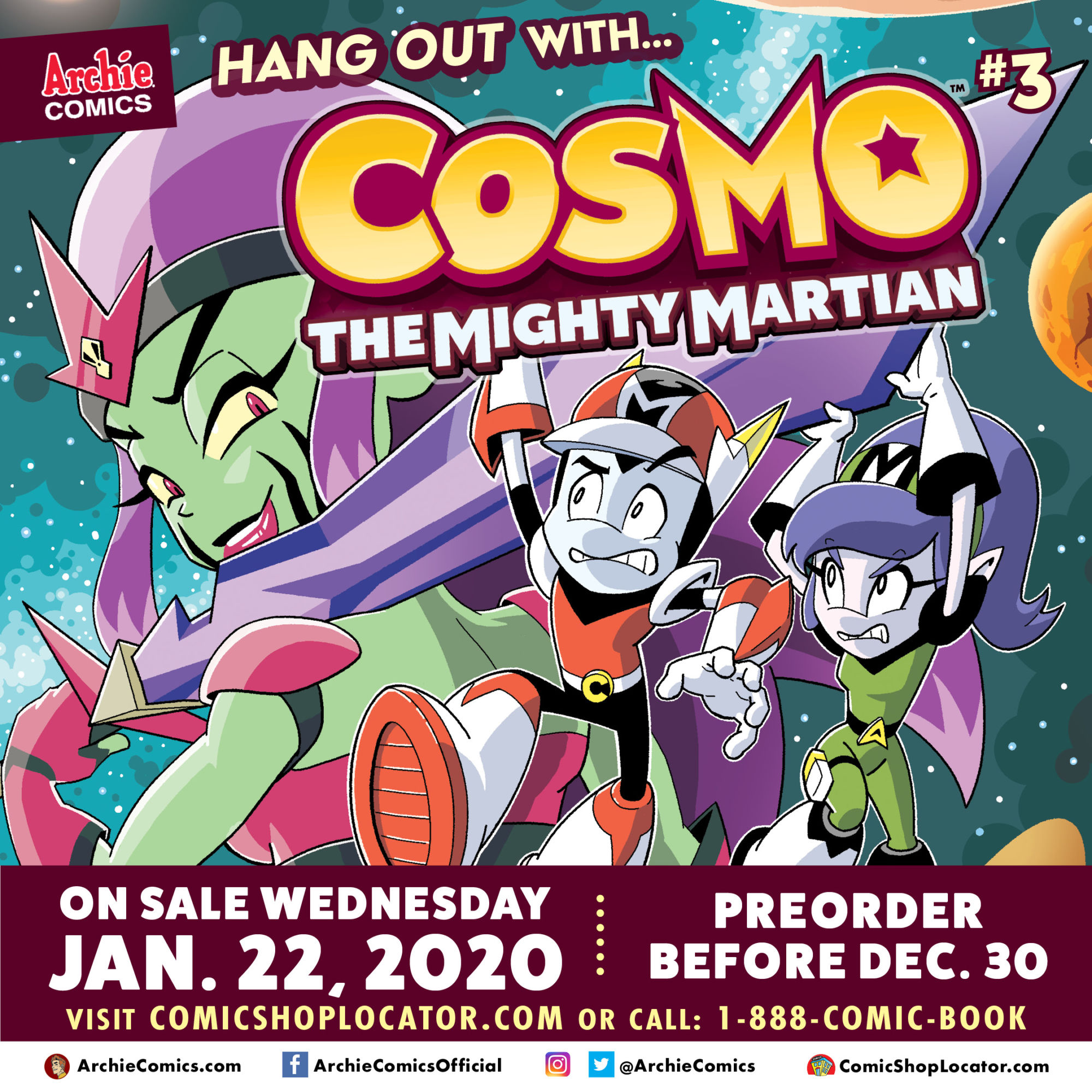 Final order cutoff is on Monday, December 30th, so if you want a copy, let your retailer know before then. Cosmo the Mighty Martian #3 hits stores on January 22nd, 2020.