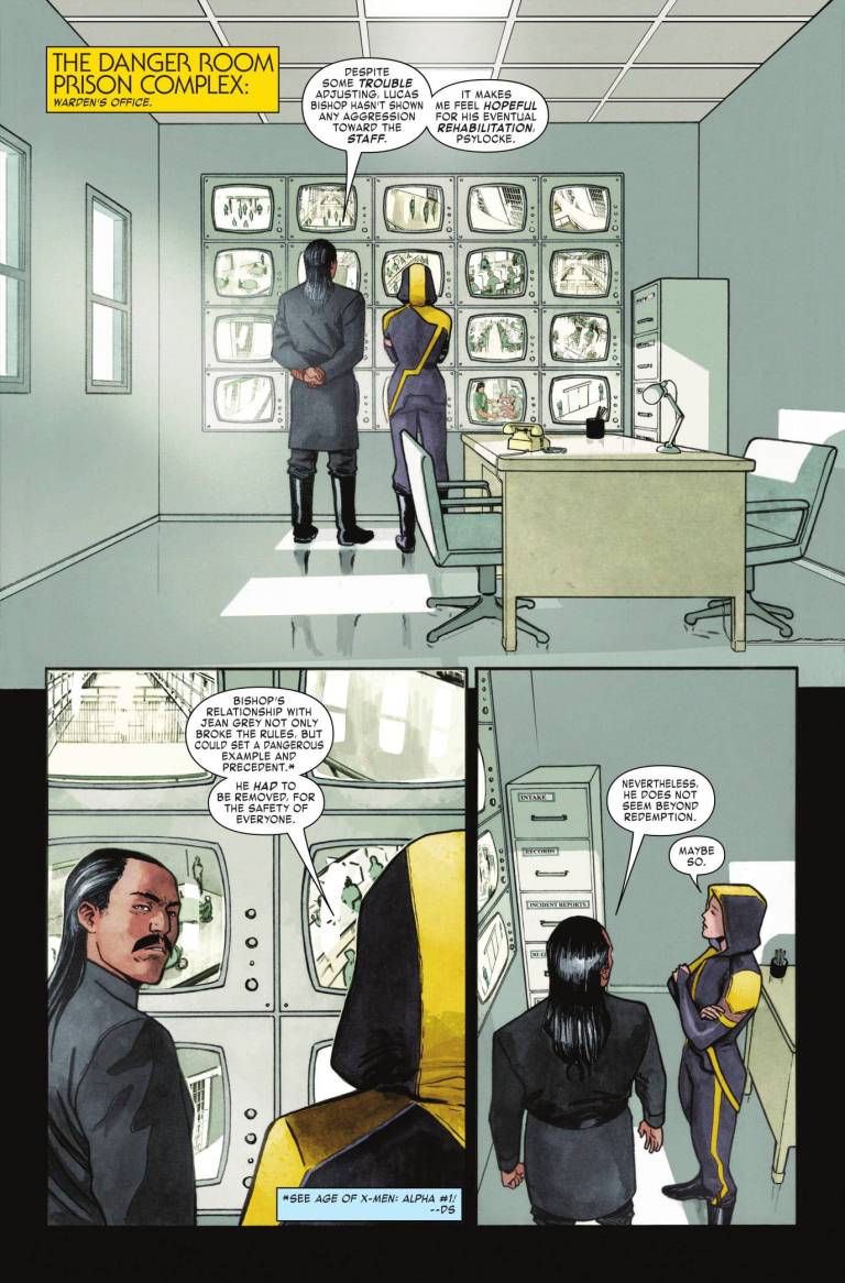 In the Age of X-Man, sex and love are against the law. It's one of the foundational principles of the supposed "utopia" created by the titular X-Man, in which everyone is a mutant, and no one is allowed to form bonds. In Age of X-Man: Prisoner X #2, Bishop, a former member of the X-Men charged with protecting the rules of the Age of X-Man, finds himself imprisoned in the Danger Room complex for making the beast with two backs with Jean Grey (Grey, who had not offended as many times as Bishop, was simply mindwiped).
