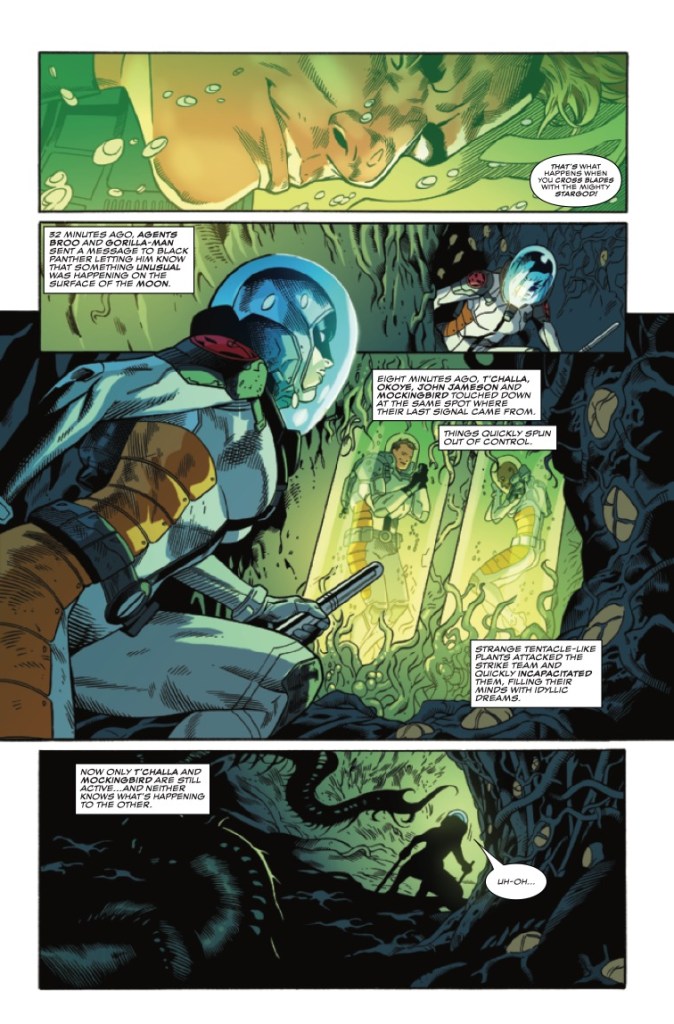 But does Black Panther and the Agents of Wakanda #4 challenge that notion? First, a recap, always appreciated when it occurs on the page in comic form.