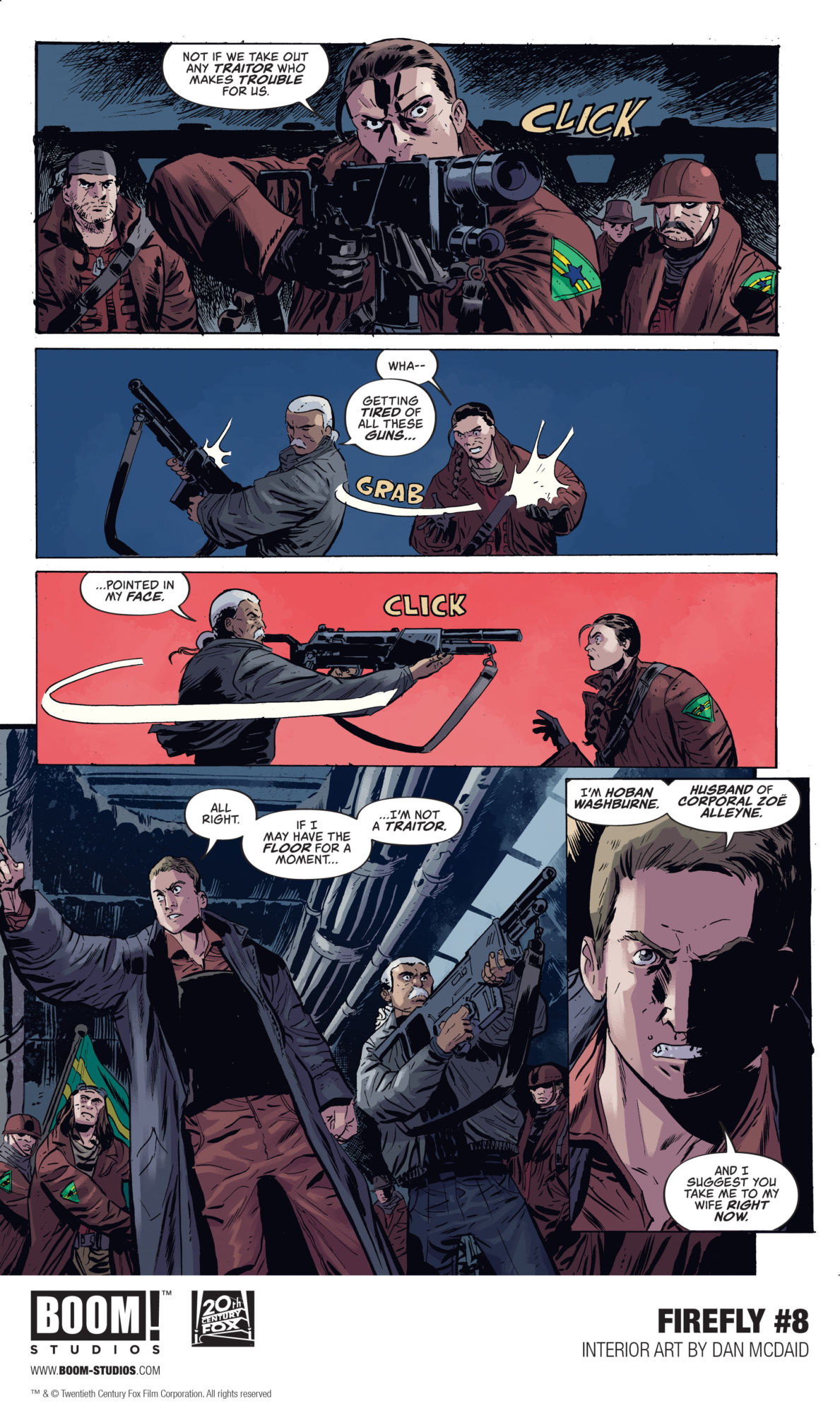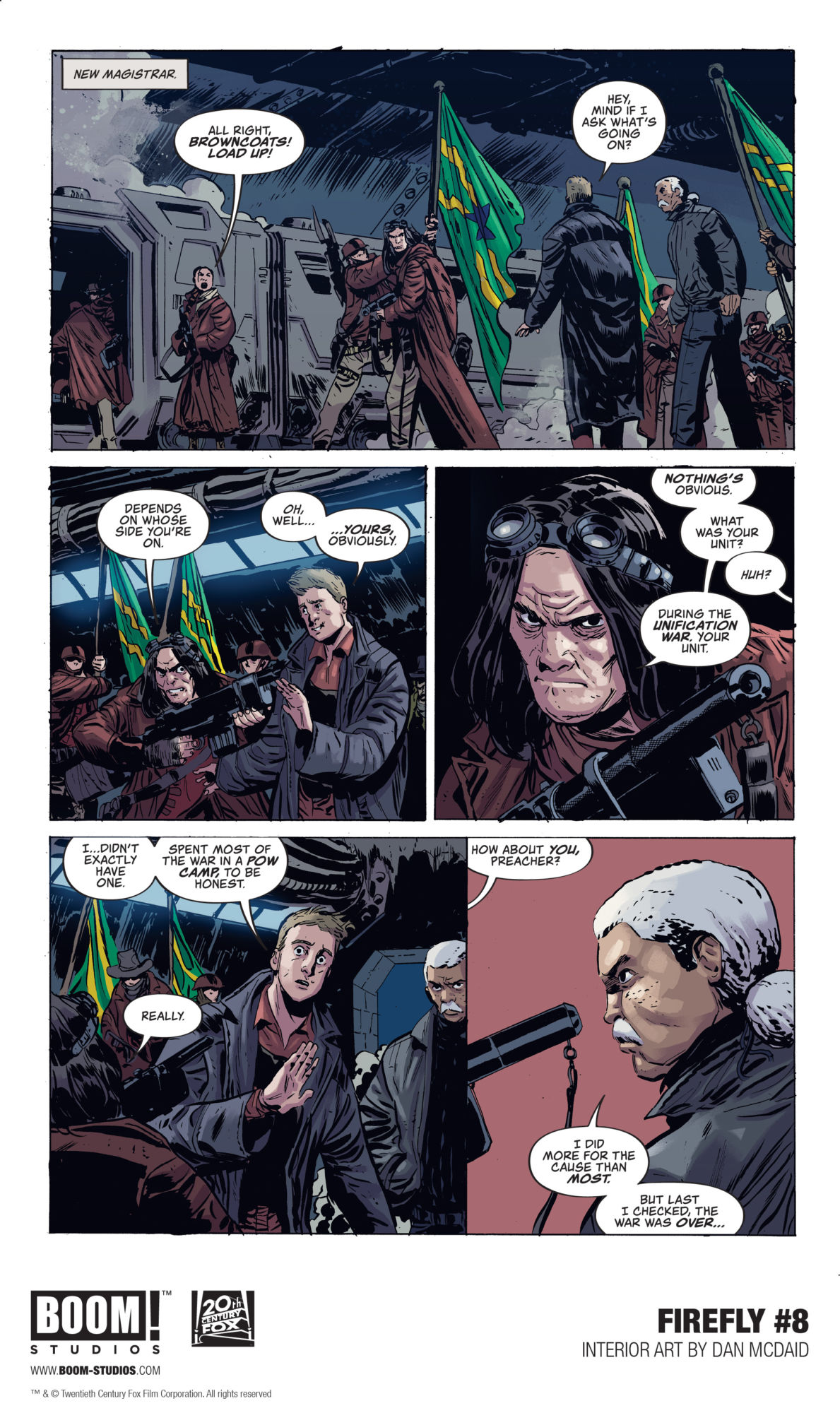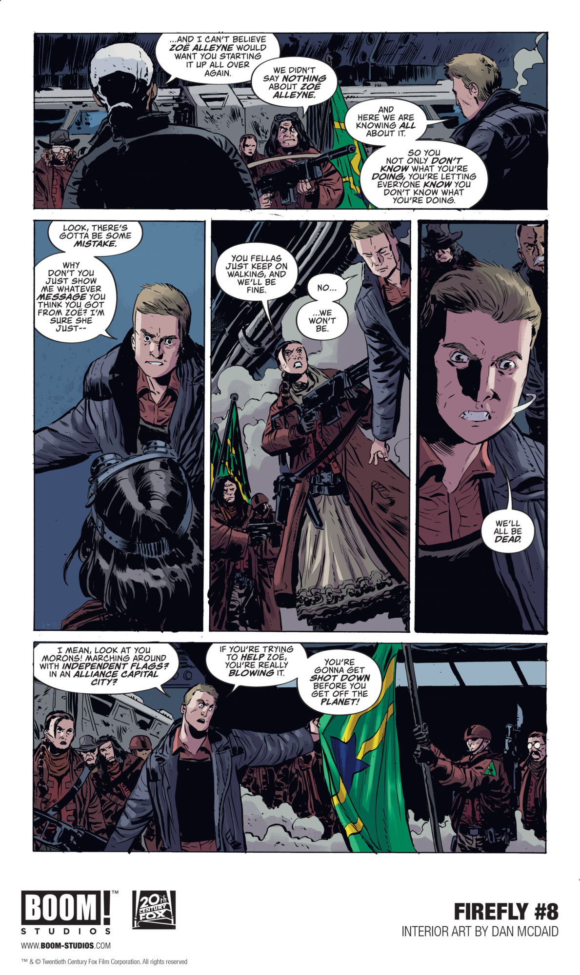 Why leave your house this rainy July 4th just to see explosions in the sky when you can stay home and gaze at these preview pages from the upcoming Firefly #8, by Greg Pak and Dan McDaid from explosive publisher BOOM! Studios? Ok, yes, technically you could do both, but then we wouldn't have a July 4th themed headline, now would we?