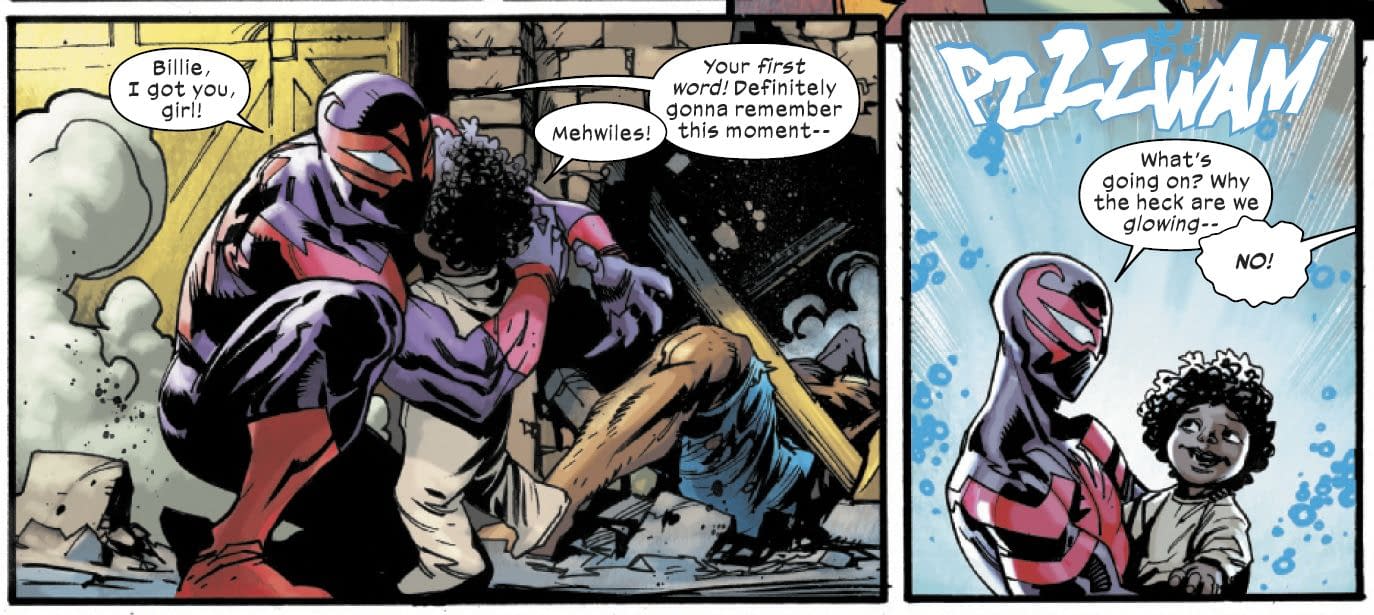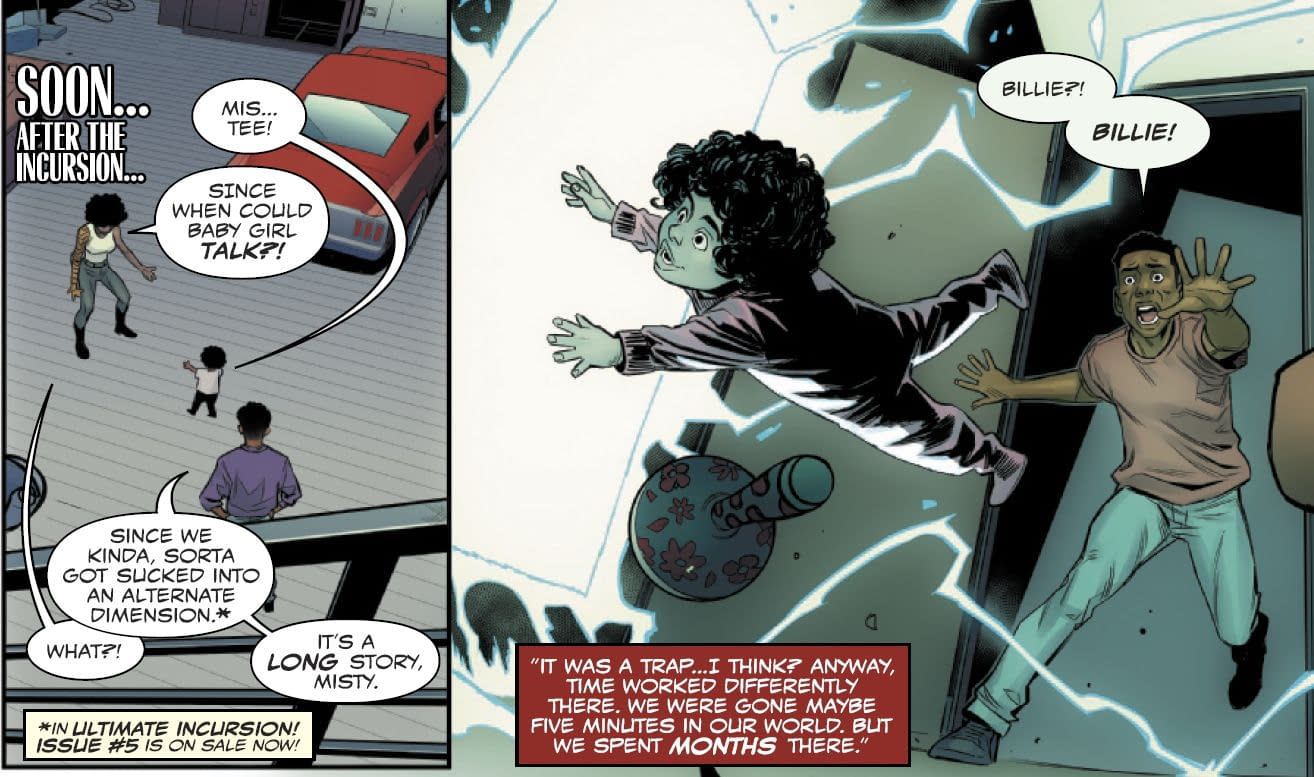 Doctor Doom looks like he may be driven even more though… but what happens next? Well Billie Morales, who fell into the Ultimate Universe by mistake is reunited with her brother, and a brand new ability.