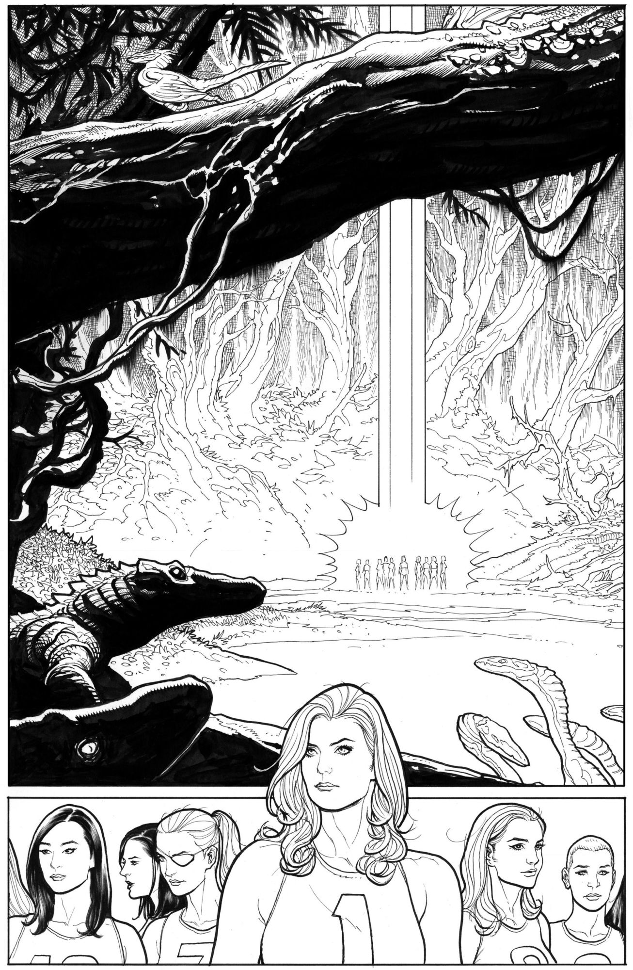 Frank Cho posted a couple of days ago, a new page from his upcoming series for Artists, Writers & Artians, Inc, Fight Girls. Also in this case, he;s been fighting against the clock, and showed off the results of three hours worth of crosshatching on the background to one particular page…