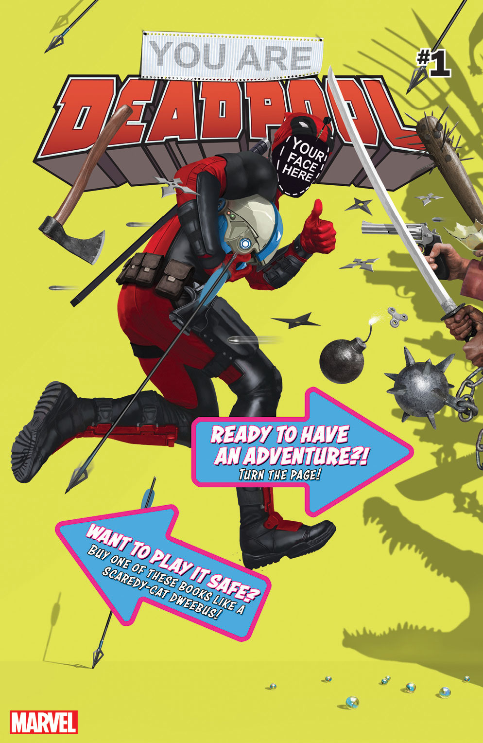 The fourth wall has been broken – by you, because this May, YOU can be Deadpool! The merc with the mouth is your guide as he takes you on a fantastic ride that doubles as a role playing adventure in this new five-part weekly miniseries where adventure…danger…and the future…all rests in YOUR hands!