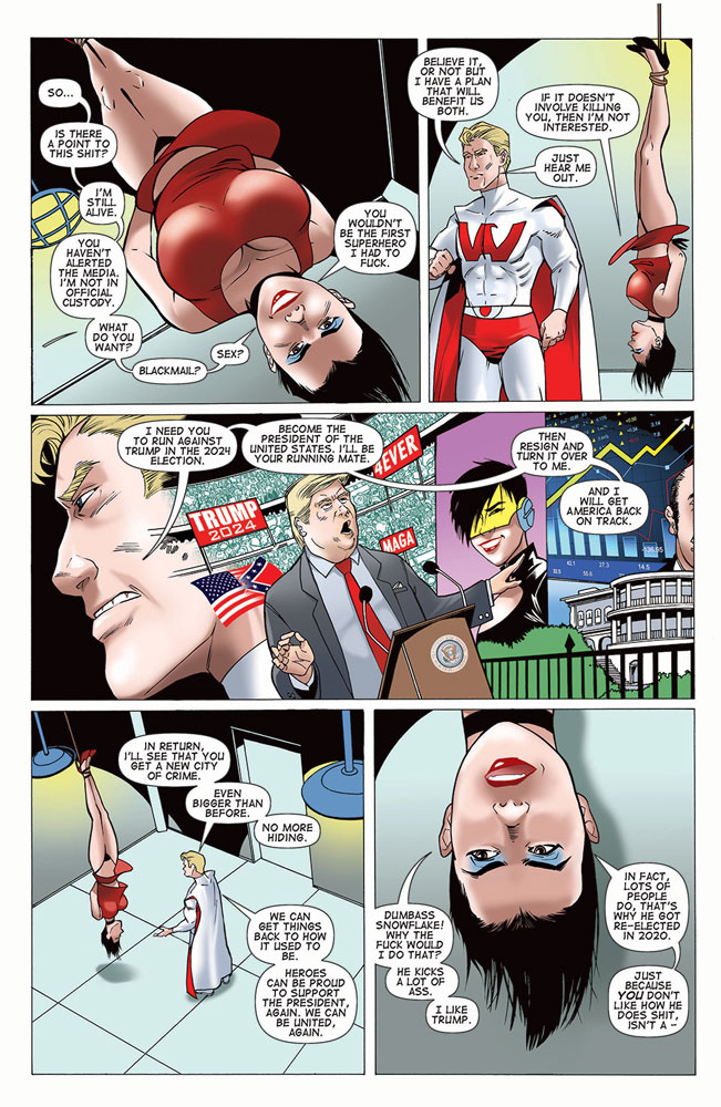 It's 2024, and supervillain Bomb Queen wants to stop Donald Trump from becoming president for life. Her plan: campaign against Trump, steal his voter base, and lay bare America's dark underbelly in the process.