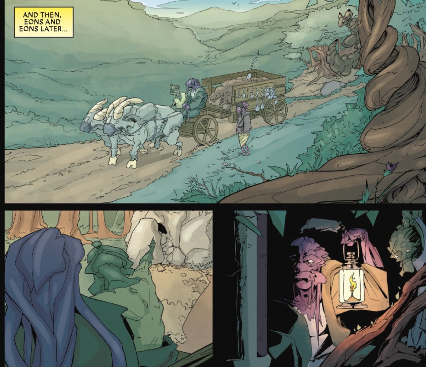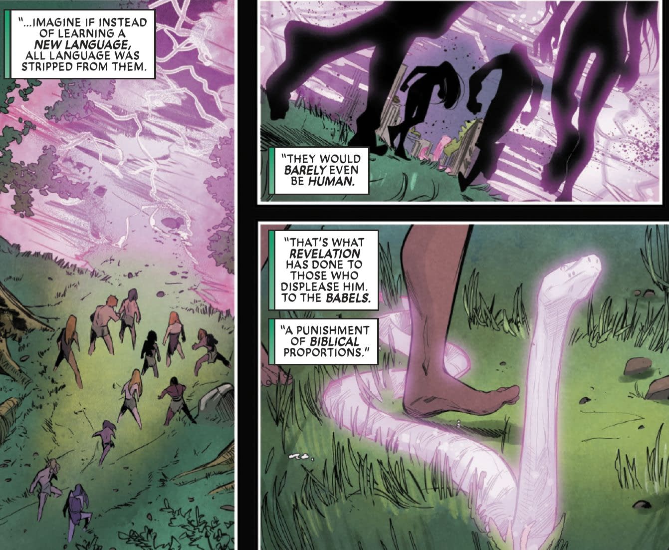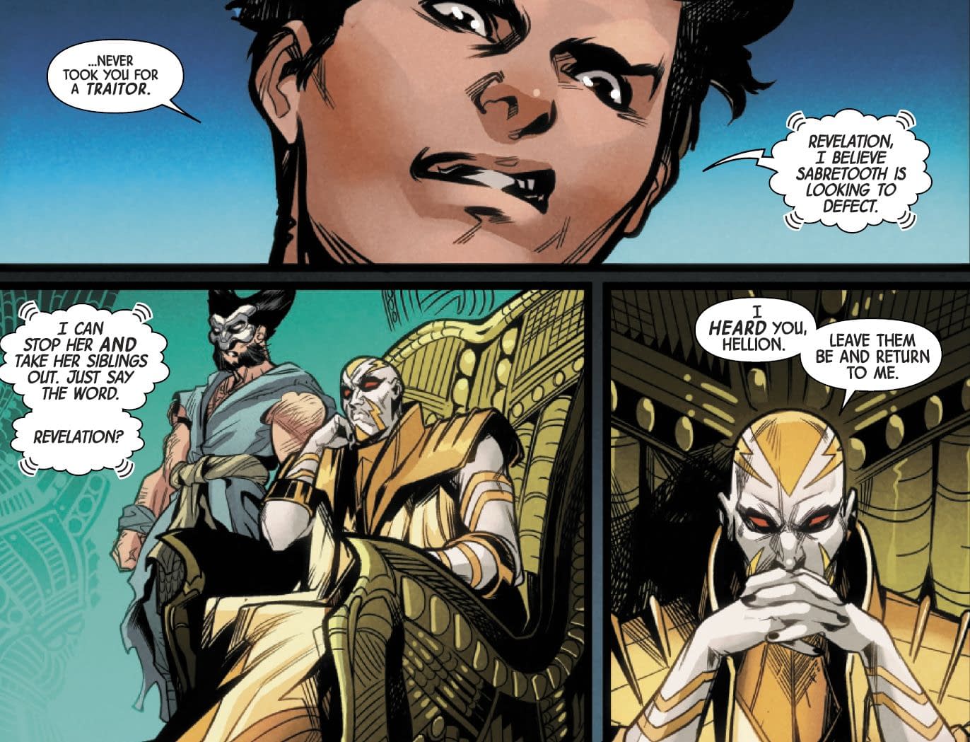 Spoilers, spoilers, spoilers… X-Men Age Of Revelation kicks off properly today with five titles, Amazing X-Men #1 by Jed MacKay, Mahmud Asrar, Laura Kinney: Sabretooth #1 by Erica Schultz, Valentina Pinti, Longshots #1 by Gerry Duggan, Jonathan Hickman, Alan Robinson, Binary #1 by Stephanie Phillips, Giada Belviso and World Of Revelation #1 by Ryan North, Al Ewing, Jesus Merino, Agustin Alessio, Phil Noto. But what is their shared history, set across the next ten years and beyond? Last week's Overture saw the system established, Cyclops and The Beast brought forward in time, and a message sent by Bei to Arakko to summon Apocalypse. And it seems that the message was received… by someone at least.