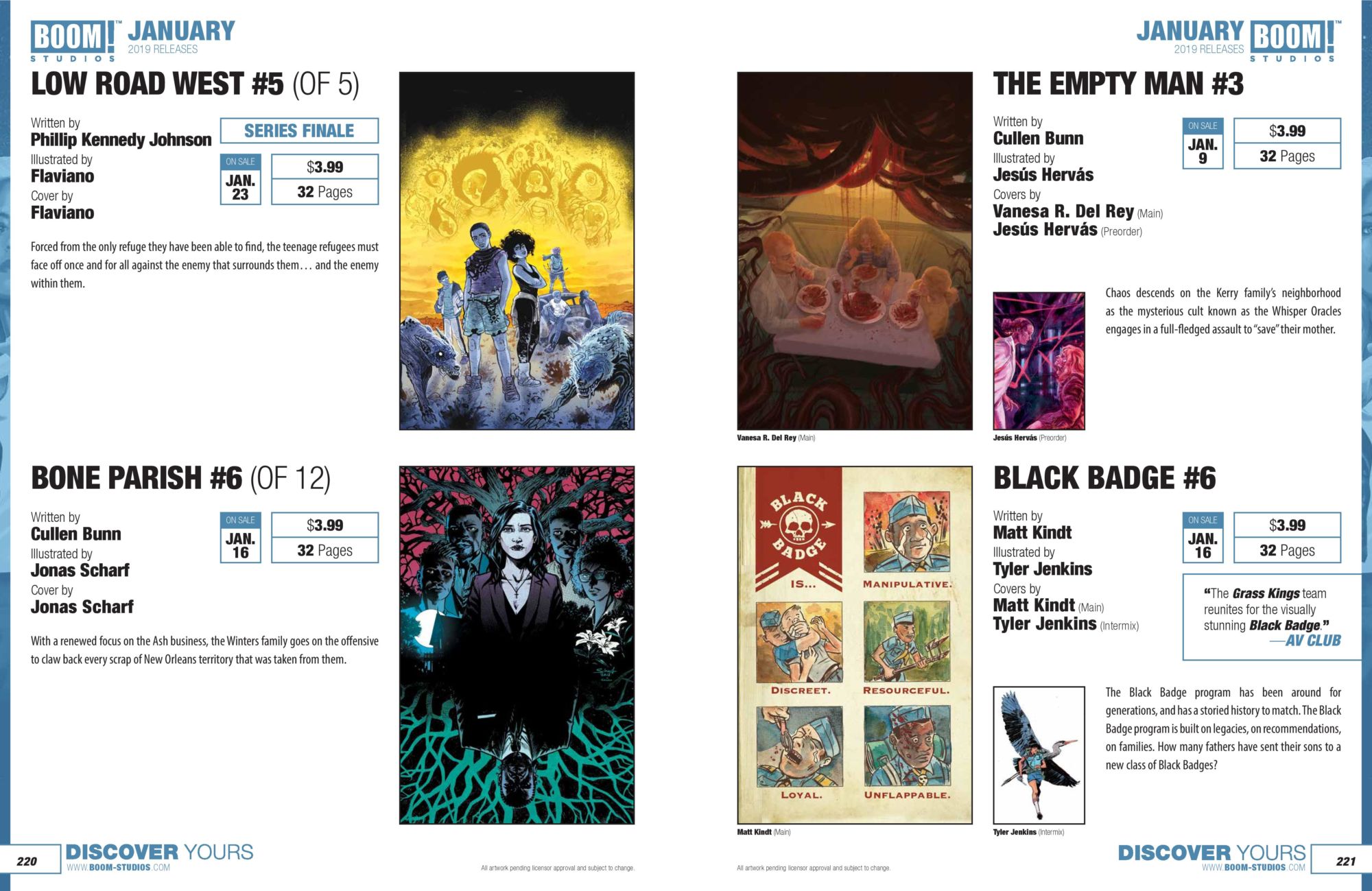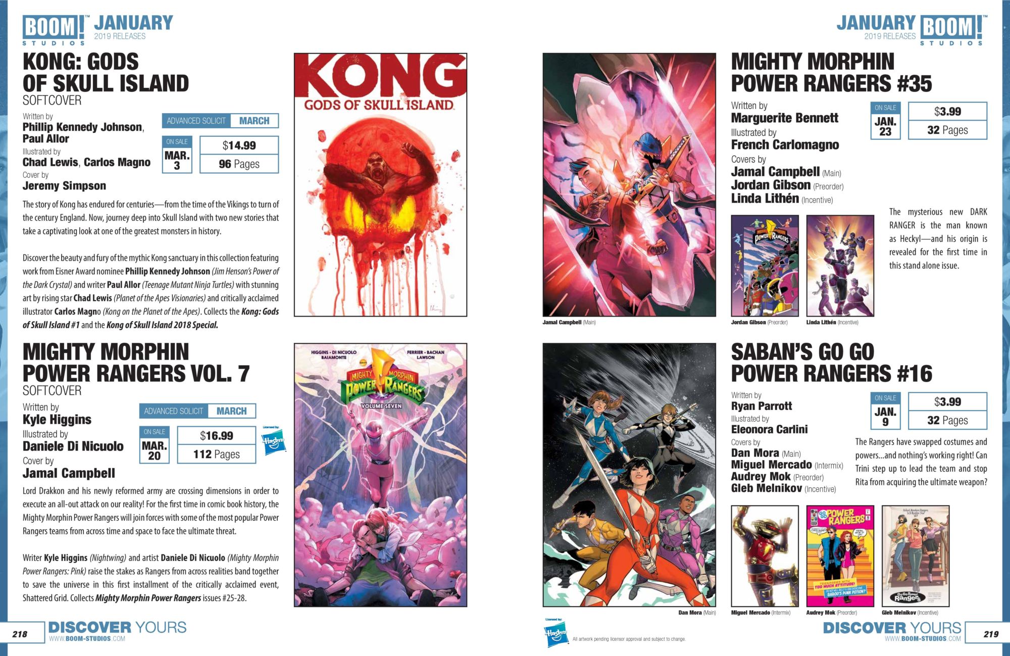 Here are BOOM! Studios solicitations for January 2019, straight from the catalogue… followed by the wordage and a cover gallery…