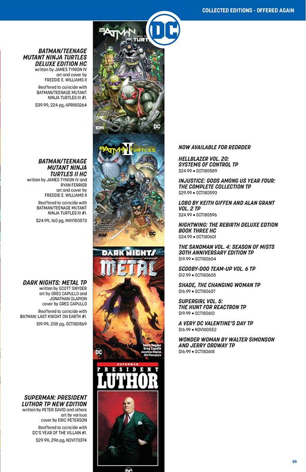 So we have the launch of Scott Snyder and Greg Capullo's Batman: Last Knight On Earth–the second and possibly final Black Label original project. We have the collection of Batman Damned, Batman/TMNT III, Year Of The Villain, DCeased, there's a lot to dig into here today…feel free to help out in the comments.