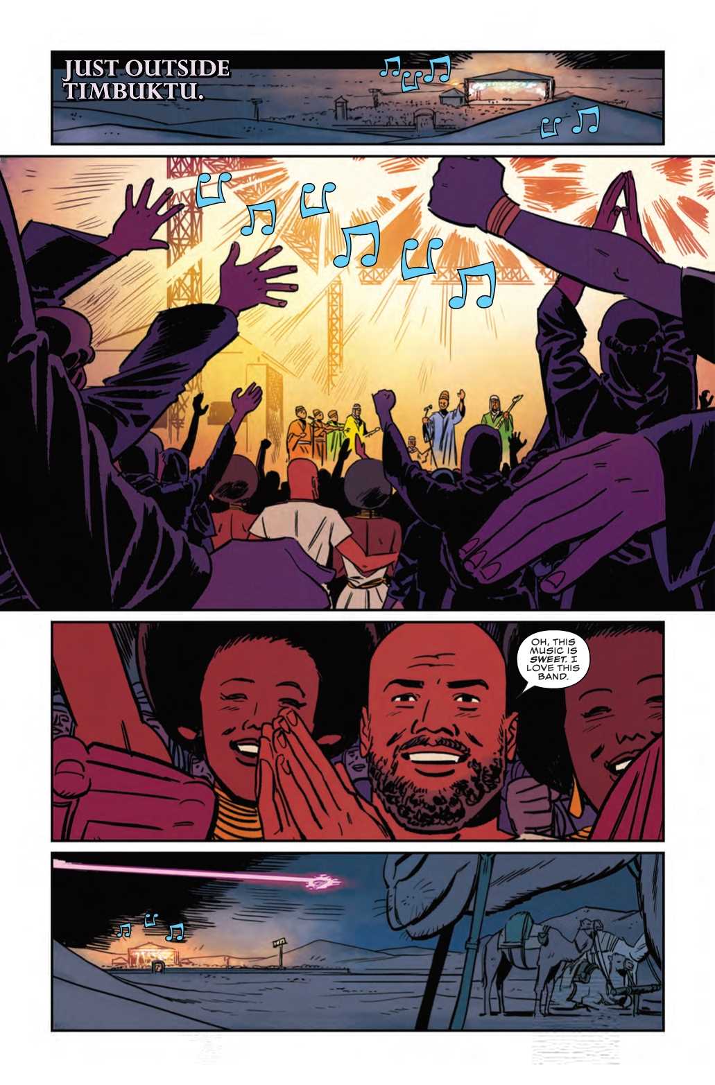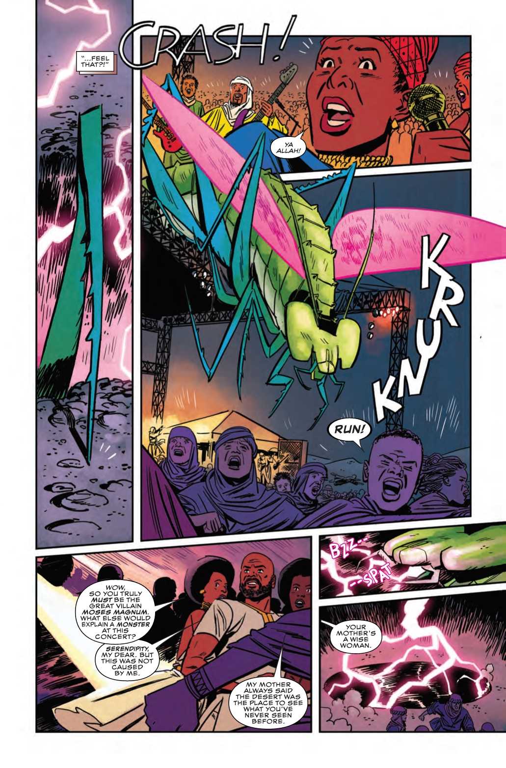With two streaming services currently touting documentaries reminding us about the 2017 Fyre Festival debacle. It's unclear whether the Marvel Universe has a Fyre Festival equivalent, but perhaps this festival outside of Timbuktu in next week's Shuri #4 could compete? Things are actually going great at this festival until the concert is interrupted by a rampaging space-insect seeking revenge on the titular Shuri.