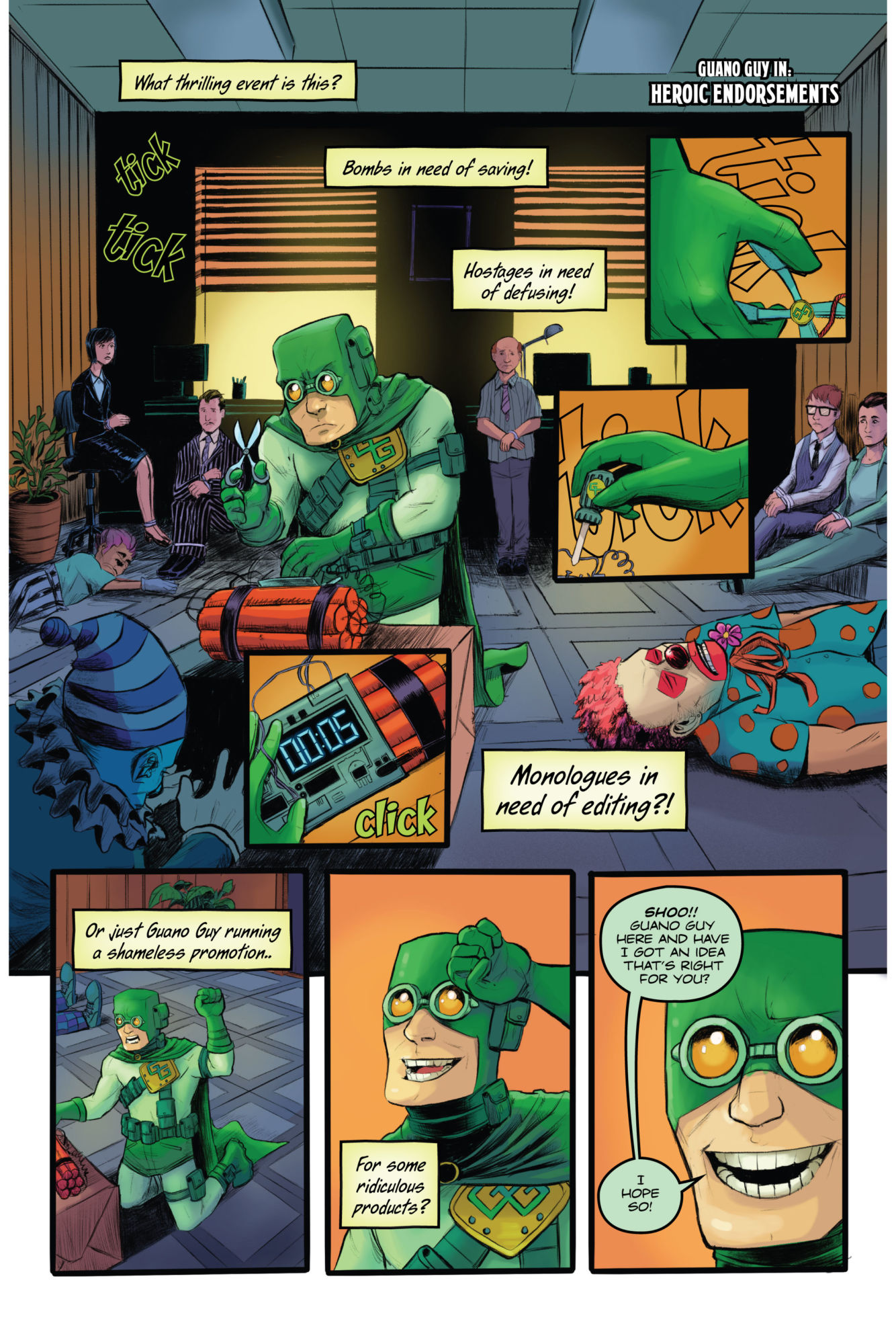 Hi, I'm Mark Darden, the creator of The Guano Guy comic. And if you're like, what the heck is Guano Guy, well, it's like Seinfeld with superpowers, a G-rated Deadpool, or something akin to Cartoon Network in print form. It's also a mix of The Tick, Batman '66, and Disney Cartoons.