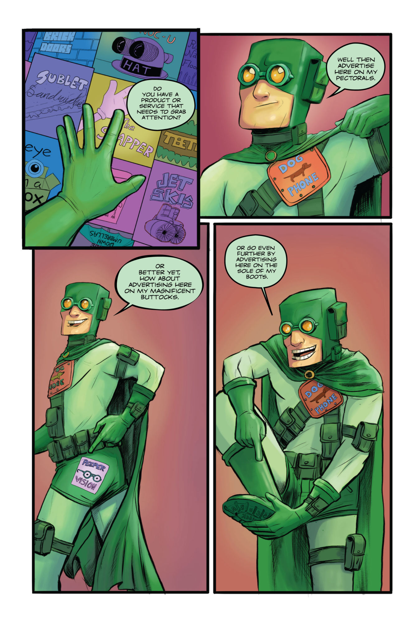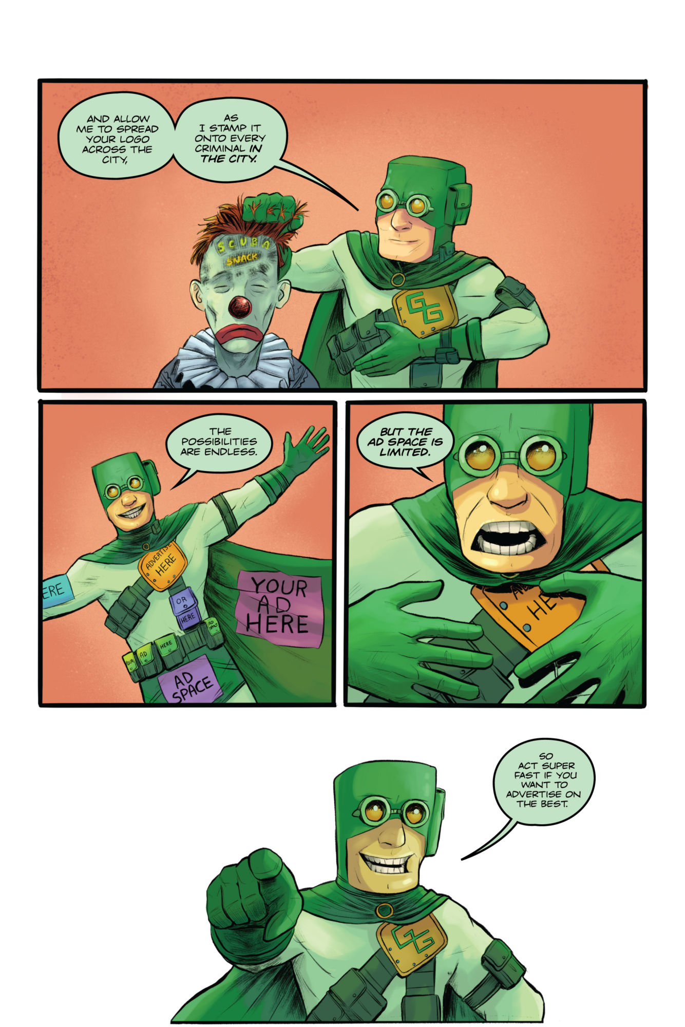 Now, Guano Guy isn't the average superhero. He looks at saving people like a sport he's trying to win. He's more concerned with social media success than actually stopping crime. And he has emotional debates with his mirror because he's run out of sidekicks to talk to. But he also has a slew of witty banter and a ton of pouches, so how can he lose?