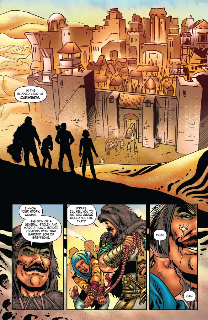 This is one of my favorite moments this issue, Sonja and the Traveler are trying to plan…for once, Sonja ISN'T the impetuous one. TARZAN is. I like his look here, like he has no f***s left to give (flips. He has no flips left).