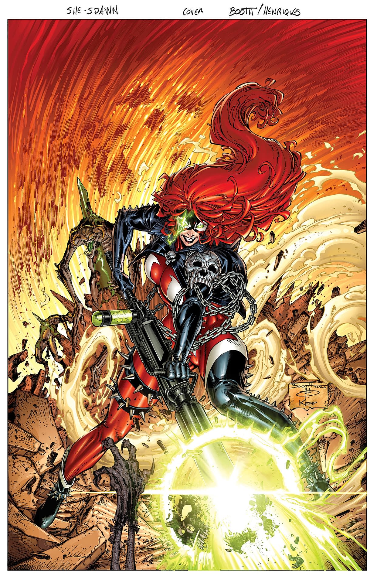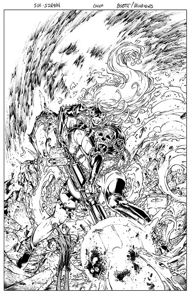She-Spawn #1 will be published on the 6th of May with covers by Guara, Francesco Mattina and Brett Booth, along with a virgin black-and-white edition of Booth's artwork and a blank sketch cover for collectors: