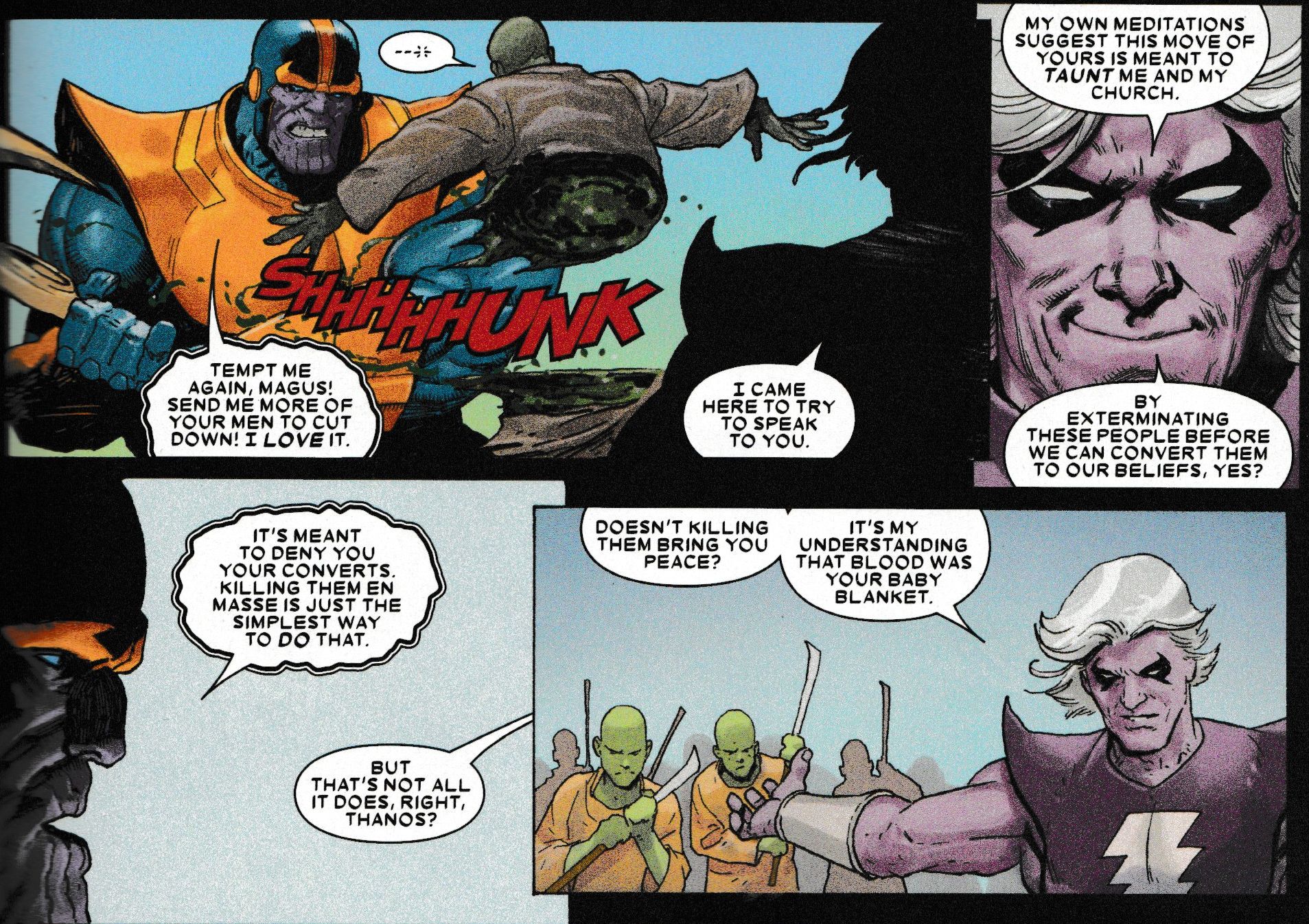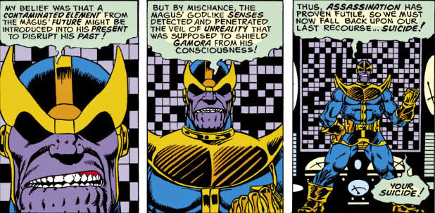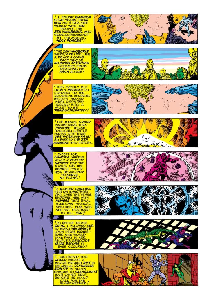 Now, just as in the movie, Thanos is responsible for wiping out Gamora's race. Just in the comic, doing so before Magus and the Universal Church could.