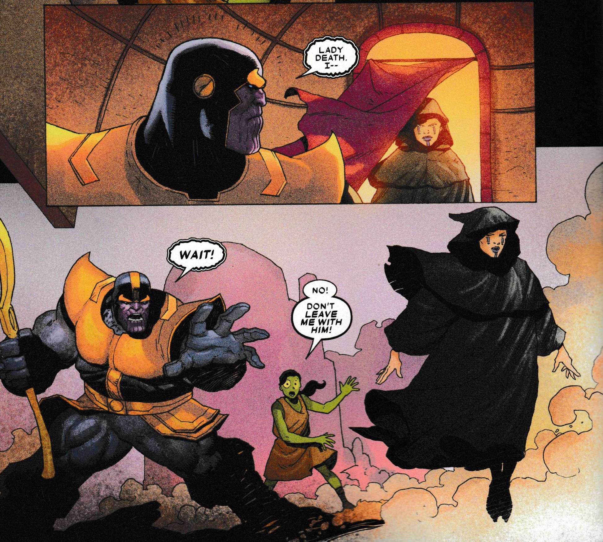 Well, in the new Thanos series out today by Tini Howard and Ariel Olivetti, it's time for a rewrite, that takes in some of the Avengers: Infinity War storyline.