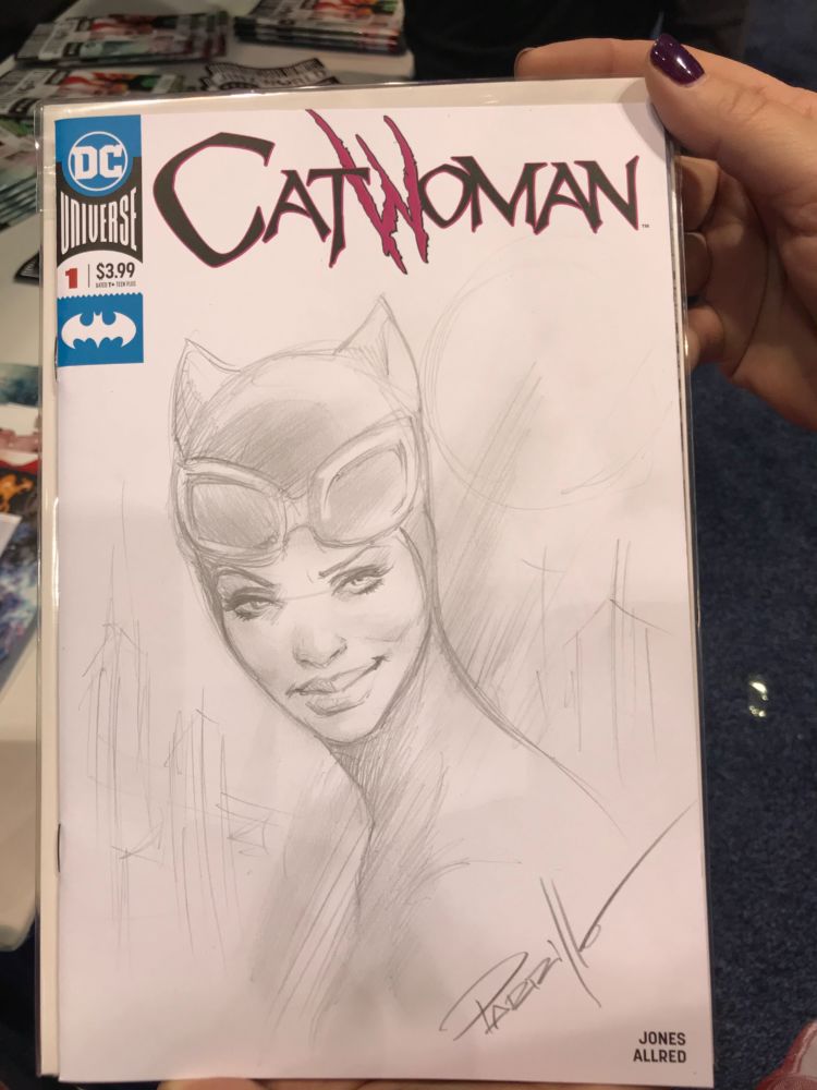 But on the other side of the booth, one lucky lady was getting a sketch cover of Catwoman by DC Comics artist Lucio Parrillo.
