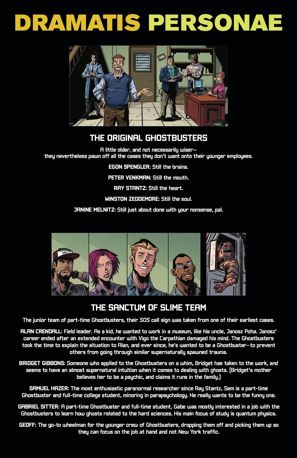 Twenty years in the future, and a new generation of Ghostbusters… is sent on all the jobs Ray, Winston, Peter, and Egon just don't feel like taking on themselves. The Sanctum of Slime Ghostbusters-Bridget, Samuel, Gabriel, and Alan-have proven themselves many times over… first against the demon Dumazu, and later with the Ghostbusters of many other dimensions in the recent Crossing Over event. Now they're ready for an easy gig, something like a simple haunted house. But they better be careful… you never know Wat could happen.