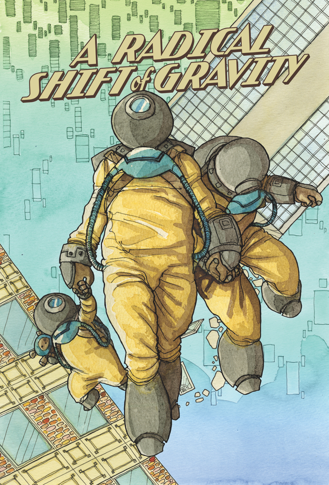 A Radical Shift of Gravity is a science-fiction fable: a graphic novel that explores the ties that bind a family together, the forces that threaten to pull them apart, and the quiet beauty of a world where everyone is floating away.