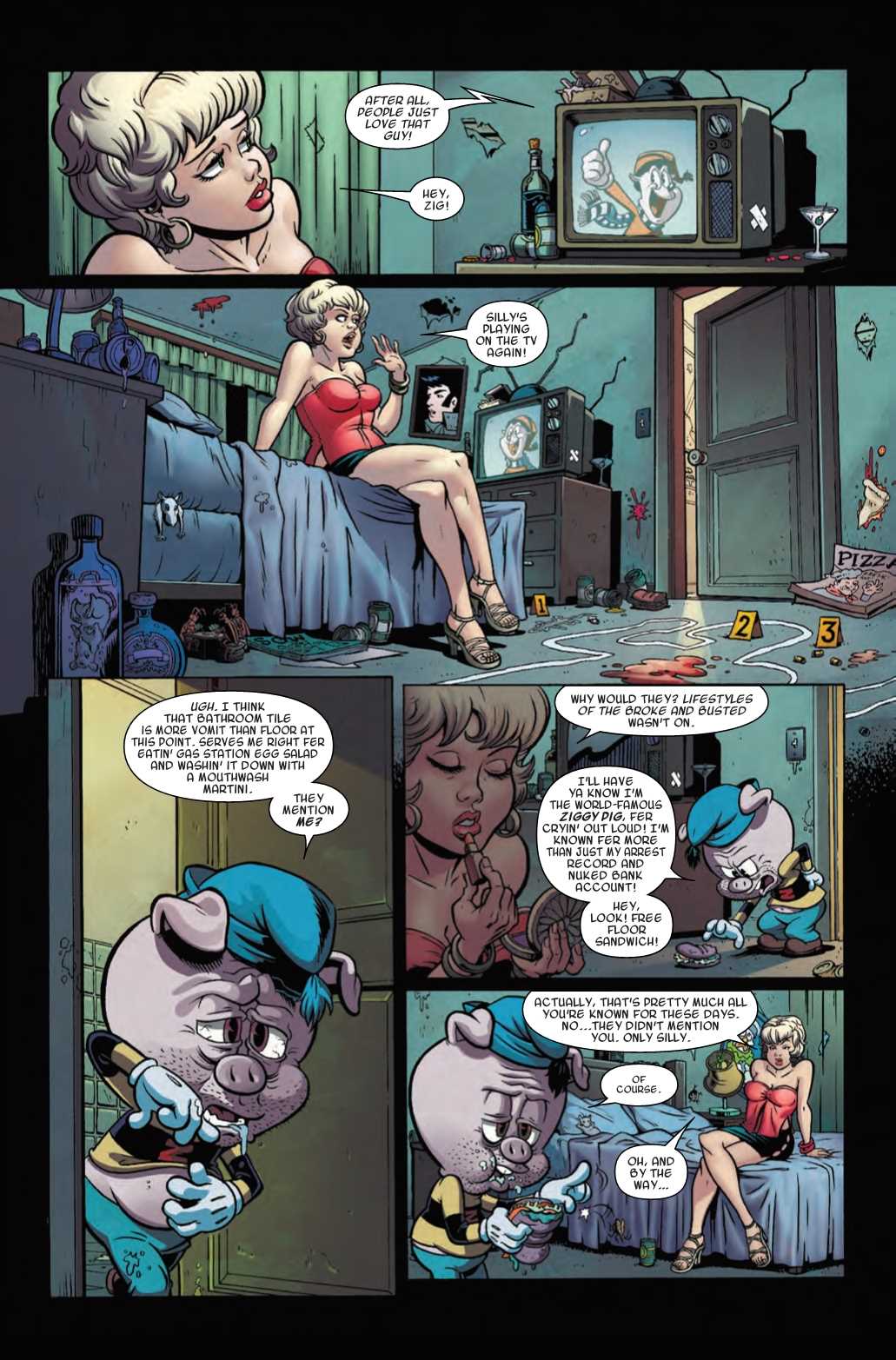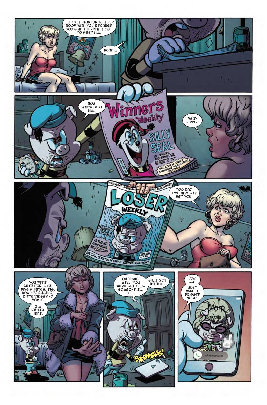 Spinning out of that Deadpool issue a couple months back and in honor of Marvel's 80th anniversary, Ziggy Pig Silly Seal Comics is getting a revival next week in Ziggy Pig Silly Seal Comics #1. But these aren't the lovable anthropomorphic animals you remember (if you're 100 years old). Instead, this is a grim and gritty world where Willy Seal runs guns from Silly Seal's theme park and Ziggy Pig is an alcoholic loser.