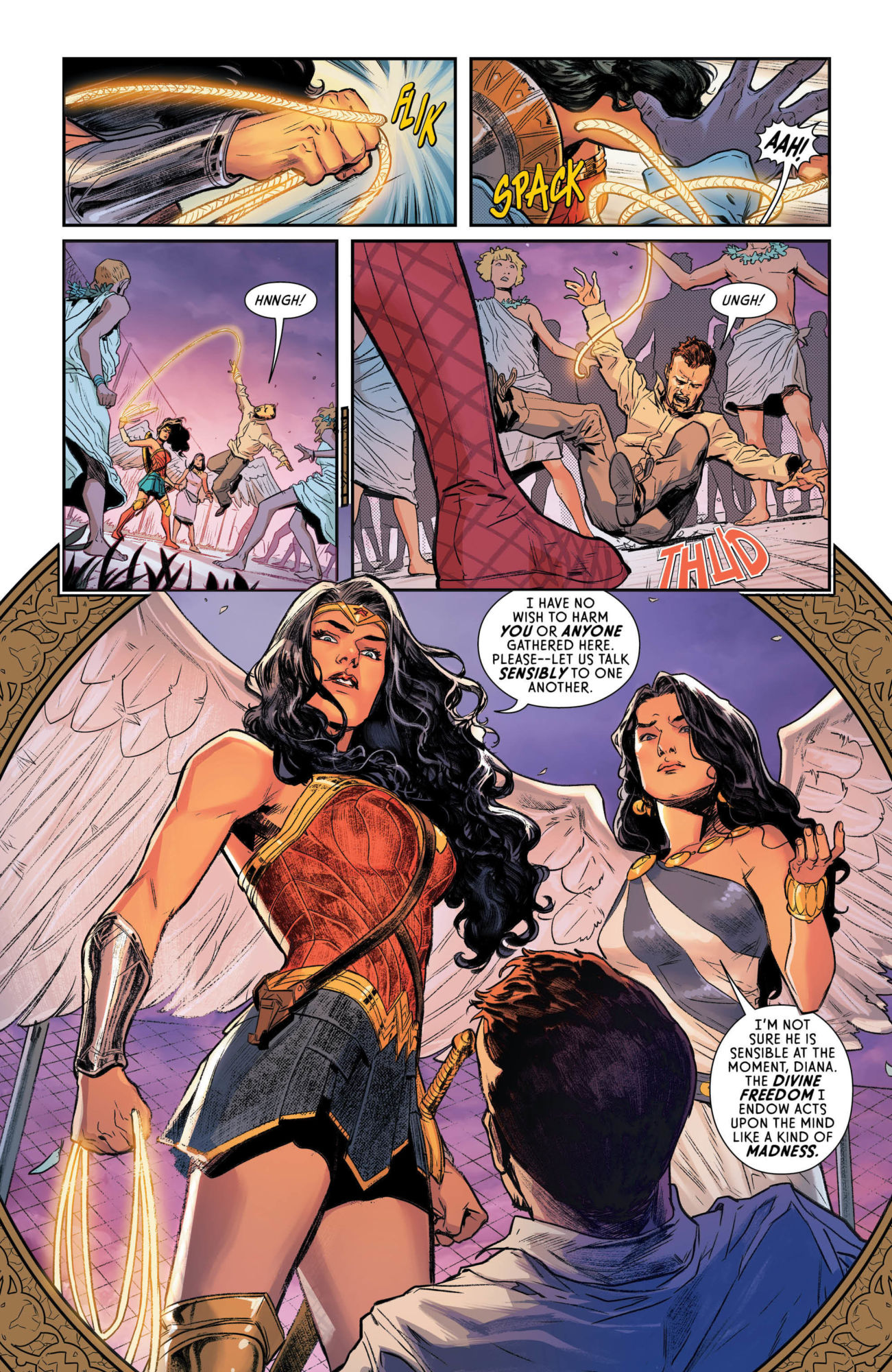 Of course, Wonder Woman isn't about to take that kind of guff from these people. Sure, Atlantiades may have messed with their heads, but they didn't do anything they didn't want to do in the first place, and besides, can't they just talk this out like rational people and demigods?