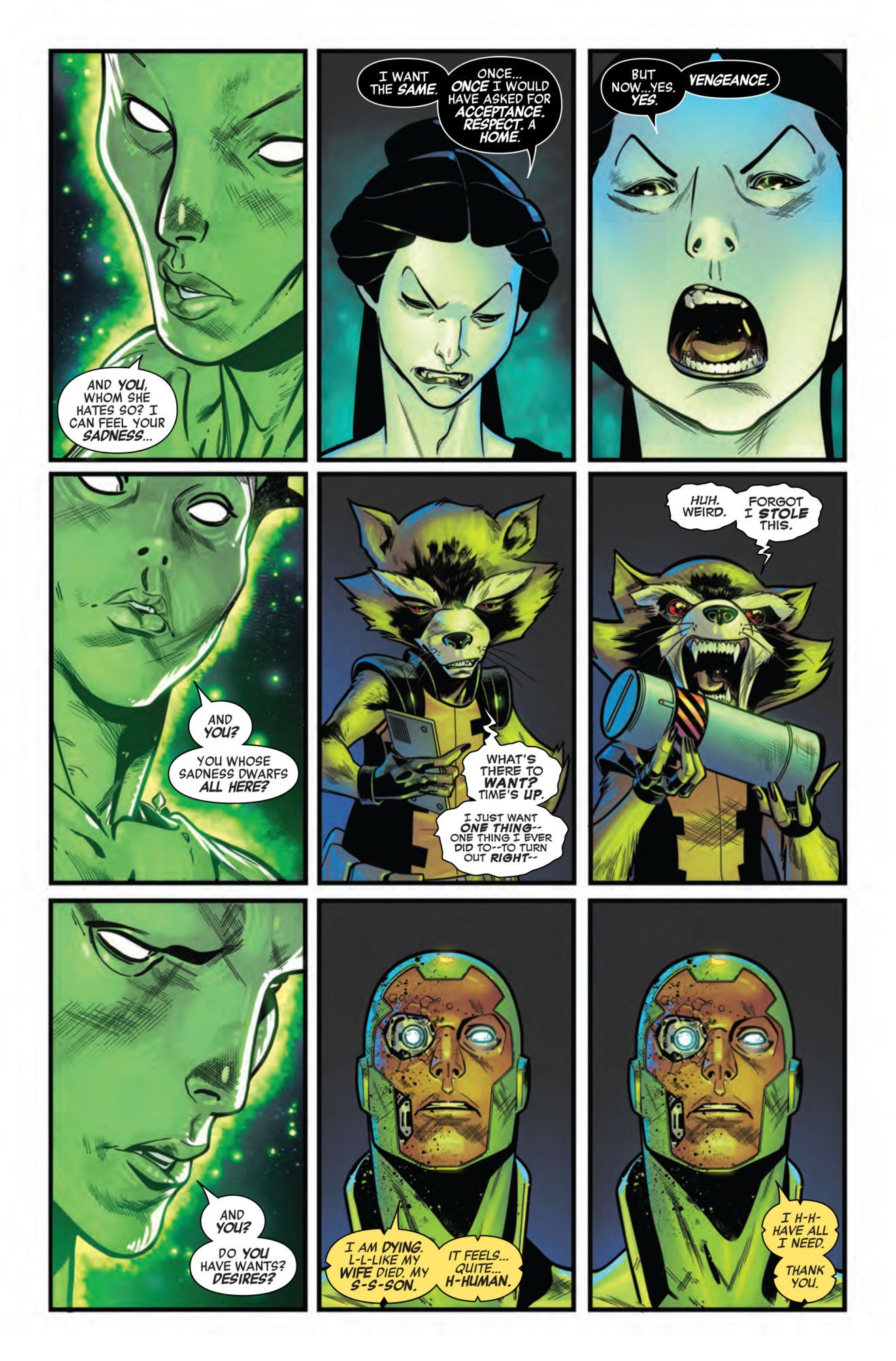 Meanwhile, The Vision is dying (again), but he doesn't mind. First of all, someone has to sacrifice themselves in a shocking character death to show this comic means business, as we all know a comic can't be important unless someone dies.
