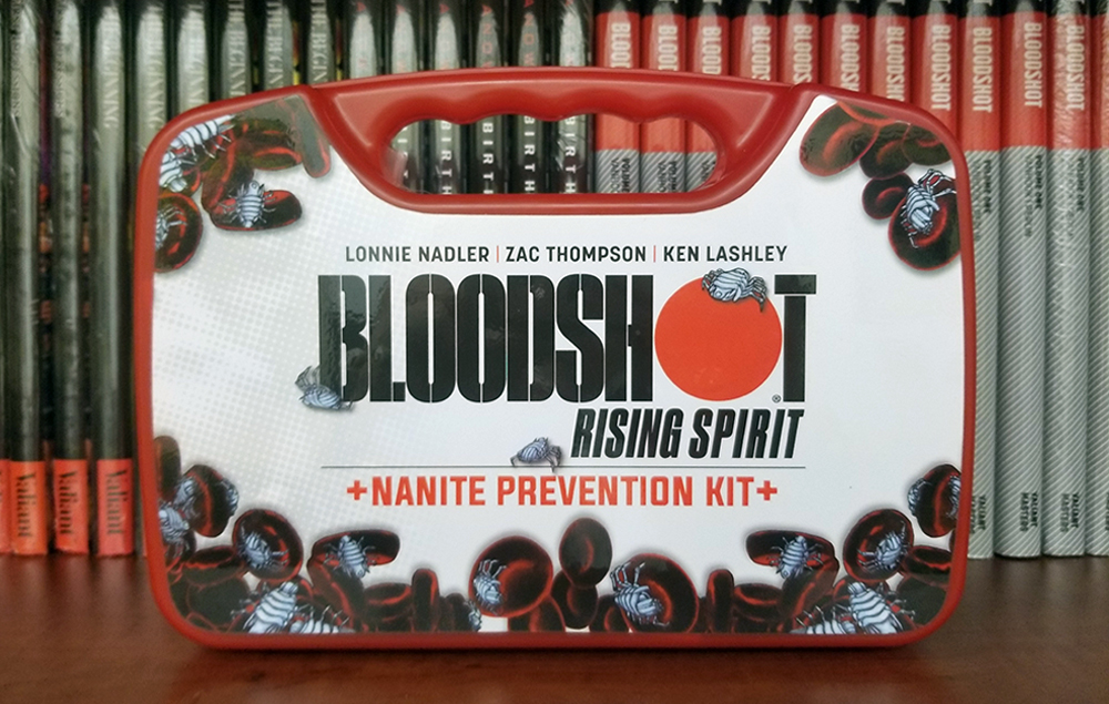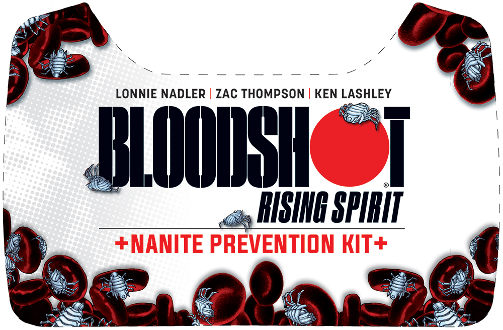 With the release of Valiant's next tentpole ongoing series, BLOODSHOT RISING SPIRIT #1, the critically acclaimed comic publisher is proud to announce a super-limited new promotional item exclusively available to comic retailers – the BLOODSHOT RISING SPIRIT NANITE PREVENTION KIT!