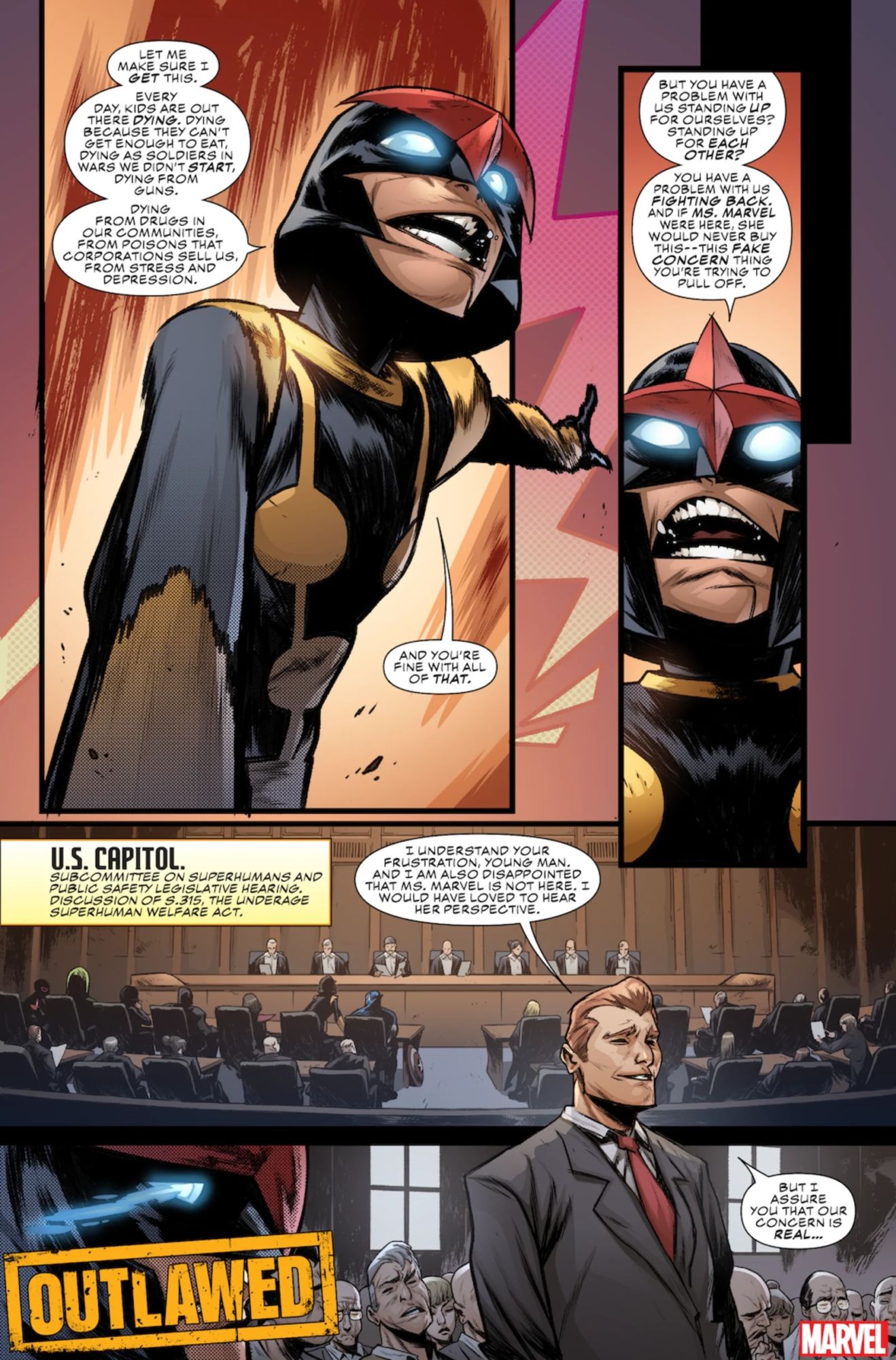Government Bans Marvel's Teen Heroes After School Tragedy in Outlawed by Eve Ewing and Kim Jacinto