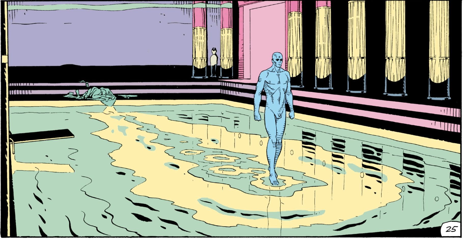 "Moore's superheroes are "watch men" in two senses: They watch over the world, and they are men of our final hour. A "grievous vision" in the book of Isaiah, from which Moore took his title, combines these two meanings: "For thus the Lord said unto me, Go, set a watchman, let him declare what he seeth" (Isa. 21:2, 6). Isaiah's watchman sees the apocalyptic fall of Babylon, and from the opening, bloody panels of Watchmen, the same fate seemingly awaits Moore's world. Every issue of Watchmen ends with a doomsday clock ticking toward midnight. In a nuclear age, Moore's superheroes are faintly ridiculous. Except for one, they have no superpowers. But these high-agency individuals are dangerous, too. "Who watches the watchmen?" chant public protestors, quoting Juvenal. In response, the Keene Act of 1977 outlawed superheroes. When the story begins, somebody is murdering the watchmen, one by one."