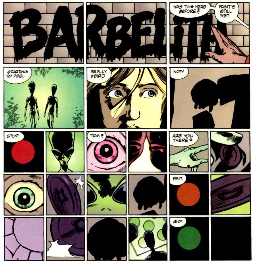 "Kathmandu was like that for 5-D spacetime/mind, whatever it was. I saw time from outside and the entirety of life as a single organism branching out from the pre-Cambrian oceans to the present and to the future, all happening at once, completed, begun. I understood 5-Dimensional perspective. I couldn't unsee it. What it felt like was alien incursion. Like contact with living higher dimensional beings, who turned me around to face a higher dimensional expansion, then explained the function of time and the universe and all manner of malarky. It was an entire functioning cosmology that felt way more real and high fidelity than this grainy simulation. I've never experienced anything else as intense. What actually happened, and whether or not the 'aliens' are any more real than my imaginary friend was real, isn't as important to me as the result – a tidal wave of transformative creative energy that powered the Invisibles, JLA, and everything after. Trying to unpack that incident has given me decades of fun. Stuff like We3 and Pax American owes everything to that way of seeing…"