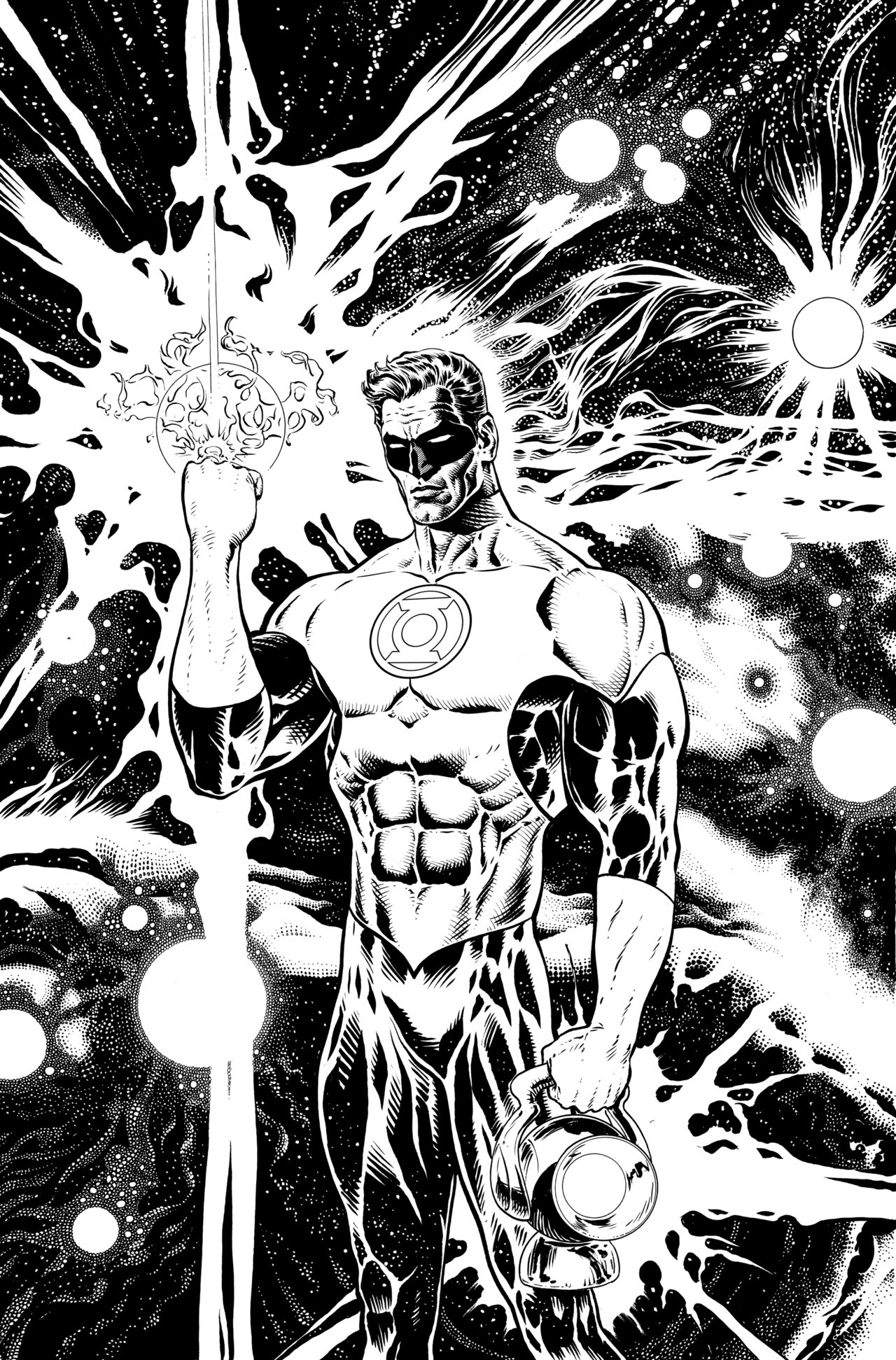 This is the black-and-white cover of The Green Lantern #1 by Liam Sharp for the comic's midnight release, for participating retailers. Clicky to make biggy and zoom in on those details. And retailers are upping the orders for The Green Lantern across the board. But also DC are seeing an increase in advance reorders on Justice League, Deathstroke and Batman, before the likes of Venom, Amazing Spider-Man and Spider-Geddon get a look in.
