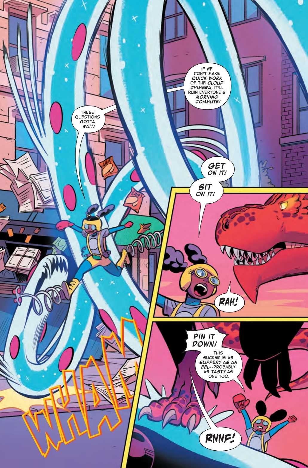 Moon Girl is just 9 years old, but she does as much or more heroing work than superheroes twice or three times her age (fact: there are no superheroes older than 27). Take today, for instance, as Moon Girl and Devil Dinosaur battle a giant ghost snake or in New York City, as she notes, "before most people put on pants in the morning." It's not an easy job, but somebody's got to do it.