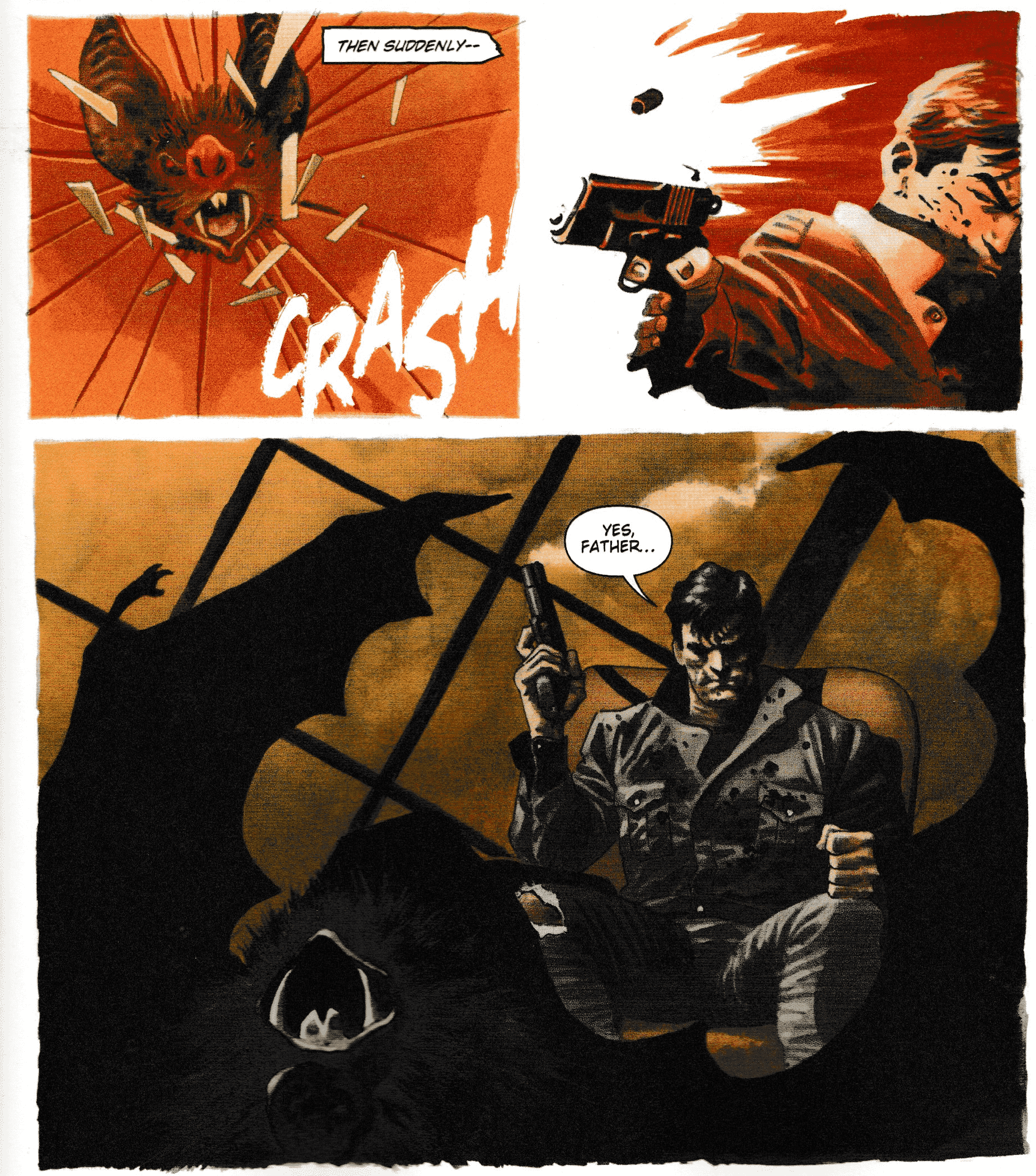 Bat through the window? Shoot it. Penguin, Joker, Riddler, blam, blam, blam. I just feel sorry for his Selina Kyle… As for his attitude to the one percenters… remember the Miller and Mazzuchelli original?