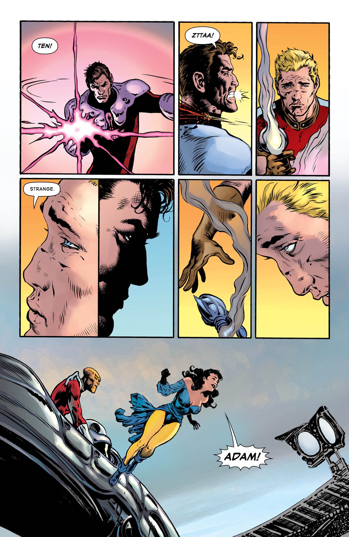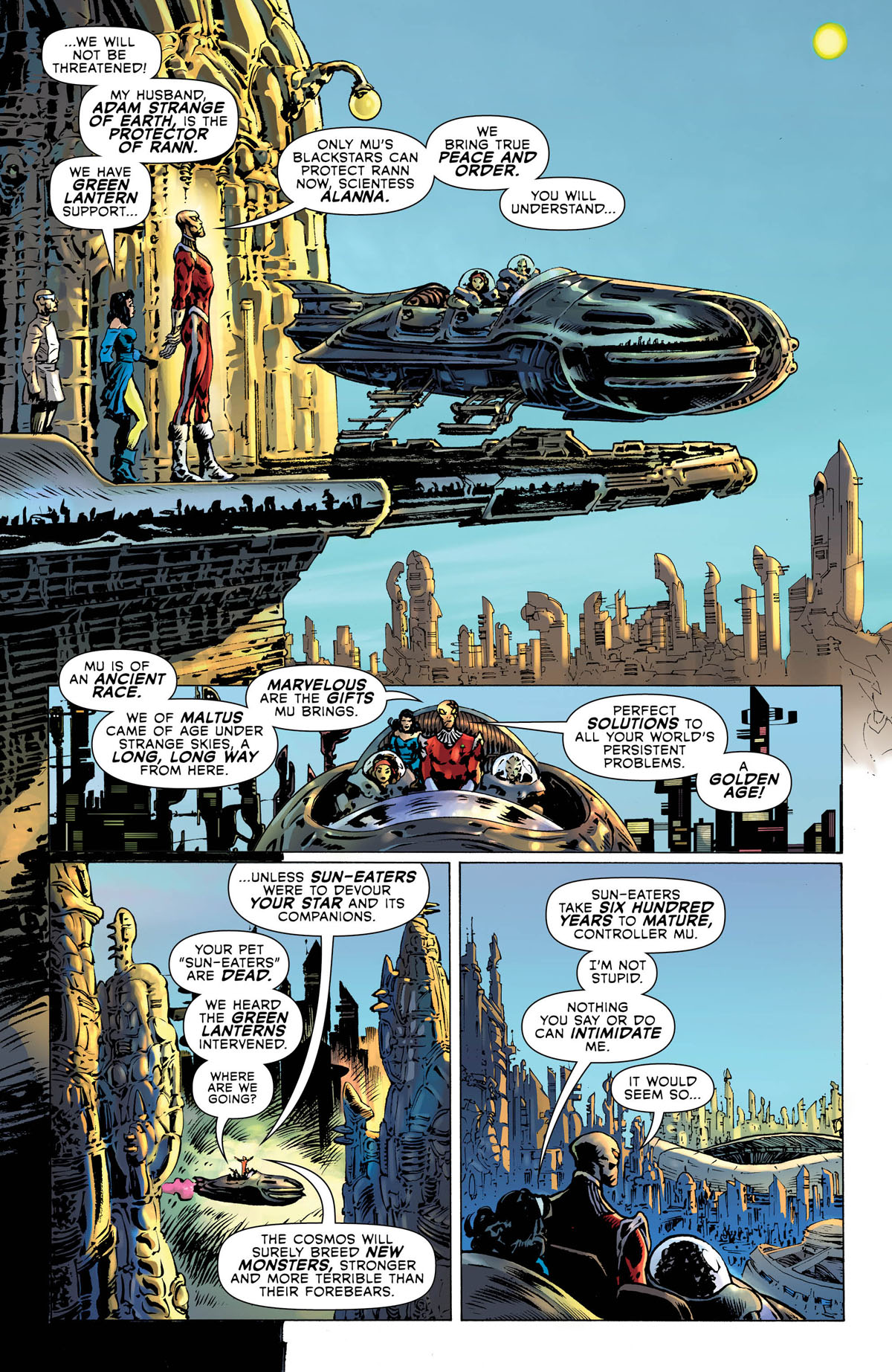 Hal Jordan's final initiation test to join the Blackstars? Kill Adam Strange! In this issue, Controller Mu and his Blackstar goon squad have invaded and occupied the planet Rann, and its protector is at their mercy! When planet after planet has fallen to the Blackstars-and these monsters are at Rann's gate-does the galaxy have any hope to survive?