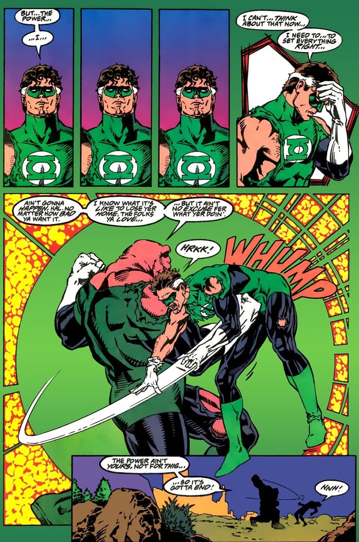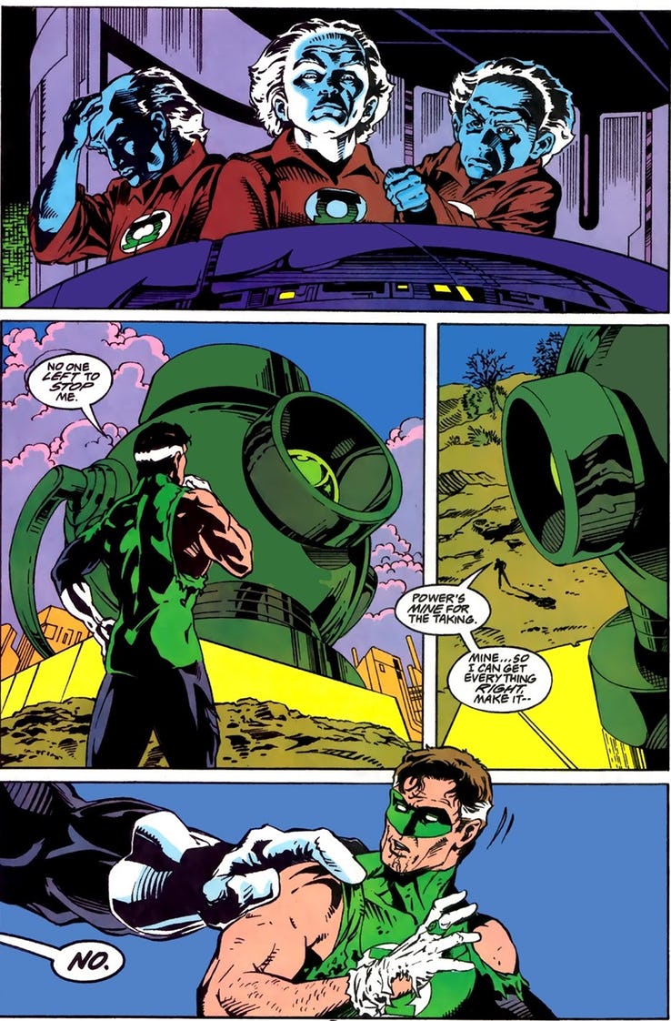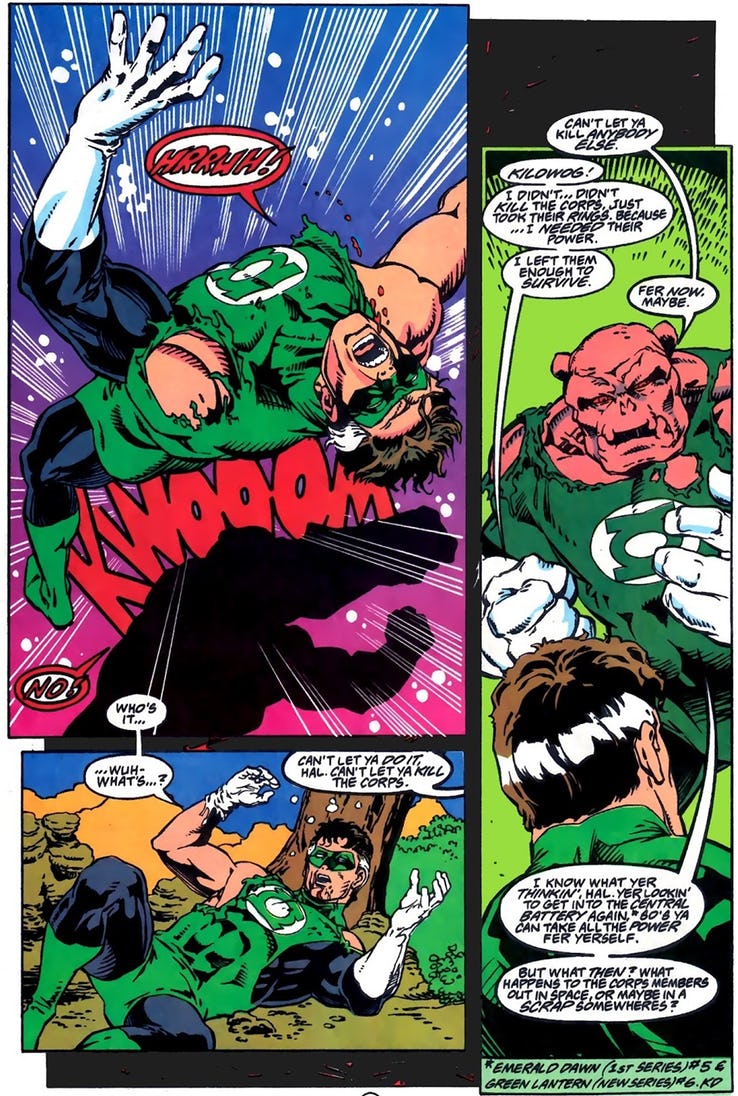 Just to clarify, that's the murder of Kilowog. By Hal Jordan. No victim blaming here. Let's remember how it went down in Emerald Twilight back in 1994….