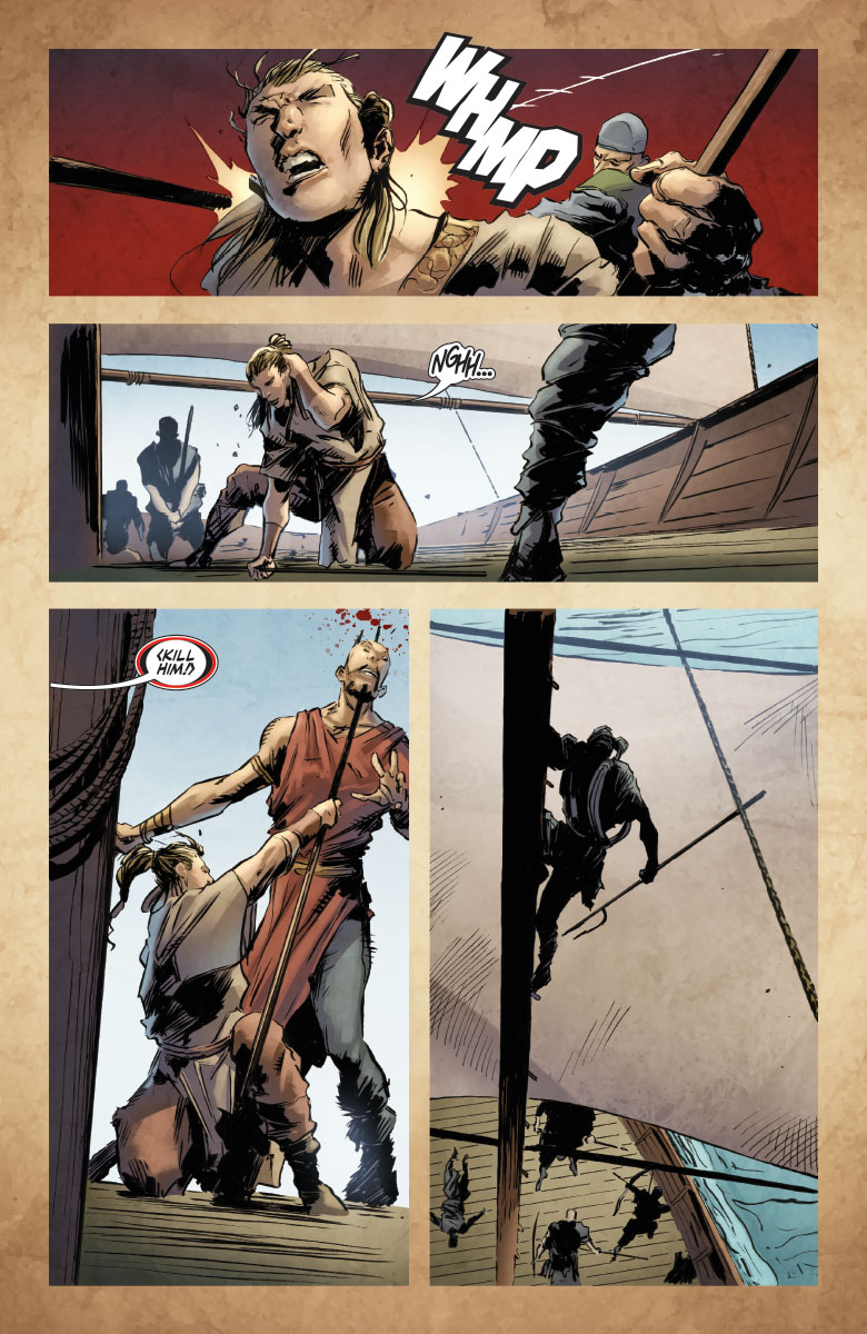 Sentenced to die for crimes against the empire, Aric of Dacia and his new comrade, Sabbas, have escaped the gladiatorial arena… only to find themselves in far more dire straits! Centuries before he would become X-O Manowar, can a brasher, younger Aric – sworn to combat the Romans at any cost – outwit and outmaneuver the machinations of the planet's most powerful civilization… even as death threatens him and the fate of the entire Visigoth nation?