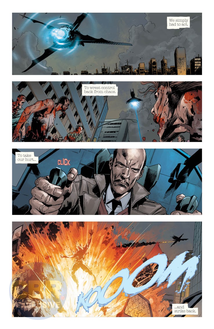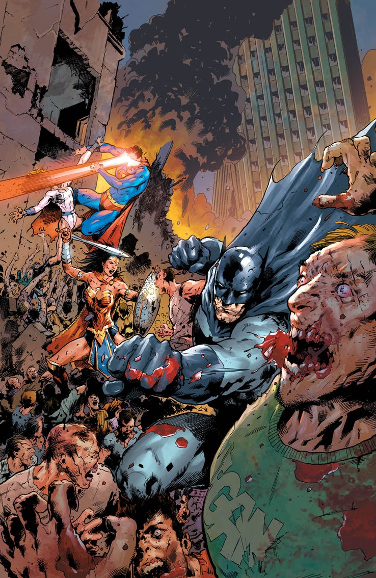 Heroes, villains and gods have fallen. Cities have collapsed. The virus threatens to reach below the waves and even to the island of Themyscira. The race to save planet Earth is on! The surviving members of the Justice League have learned the secret to the spread of the virus, but is it already too late to stop it?