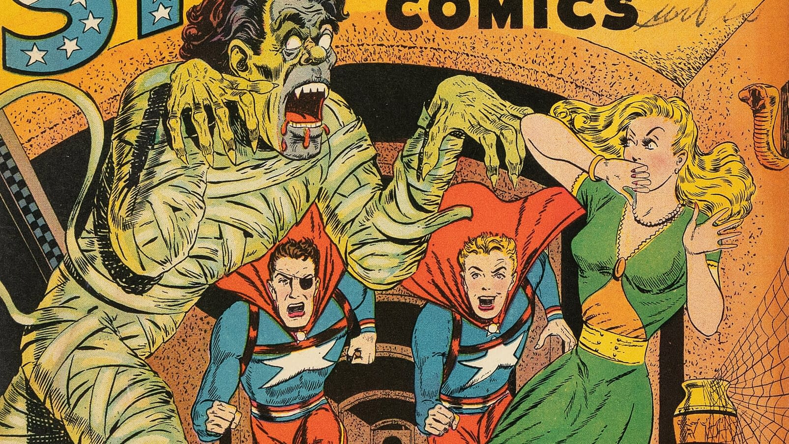 - Jack Binder's cover art channels Shudder Pulp influences, blending heroism and horror in a Golden Age classic.