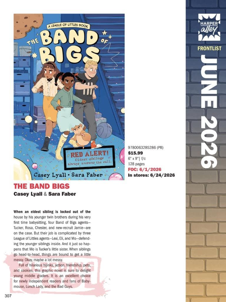 When an eldest sibling is locked out of the house by his younger twin brothers during his very first time babysitting, four Band of Bigs agents—Tucker, Rosa, Chester, and new-recruit Jamie—are on the case. But their job is complicated by three League of Littles agents—Lexi, Eli, and Mo—defending the younger siblings inside. And it just so happens that Mo is Tucker's little sister. When siblings go head-to-head, things are bound to get a little messy. Okay, maybe a lot messy.Full of hilarious hijinks, action, friendship, pets, and cookies, this graphic novel is sure to delight young middle graders. It is an excellent choice for newly independent readers and fans of Babymouse, Lunch Lady, and the Bad Guys.