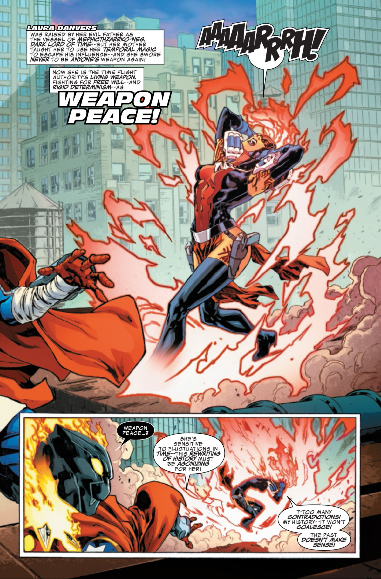"SECRET WARPS," PART 5 – SECRET WARPS! Whatever has been causing worlds to smash together is out of control…and starts smashing Warp Worlds heroes into one another! As the heroes begin turning into strange new amalgamations, can even Ghost Hammer turn things back to normal? PLUS: A bonus tale of Sigurd Stark battling the twin wolves of addiction and Fenris the god devourer!